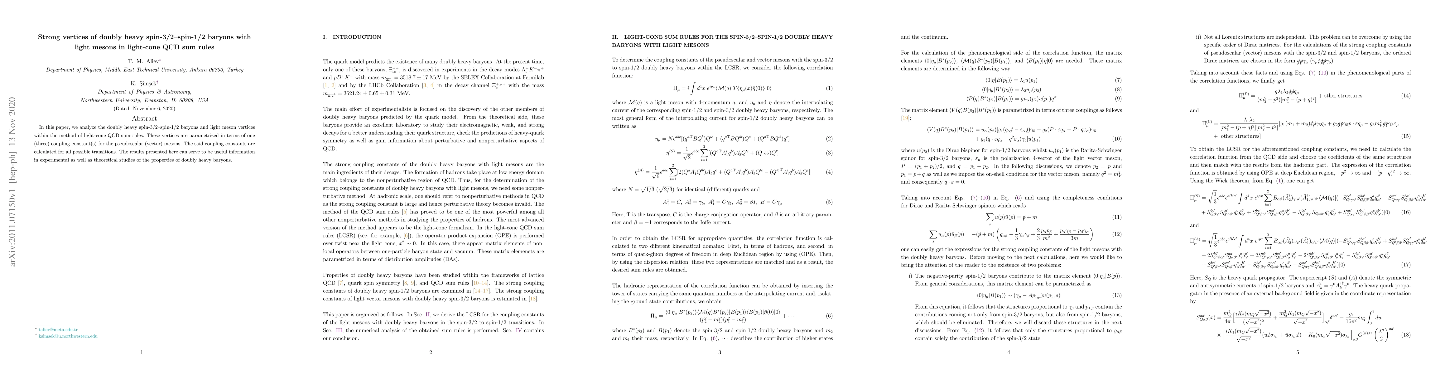 This paper calculates the coupling constants for doubly heavy spin-3/2-spin-1/2 baryons interacting with light mesons using light-cone QCD sum rules, providing valuable data for both theoretical and experimental investigations of these baryons.