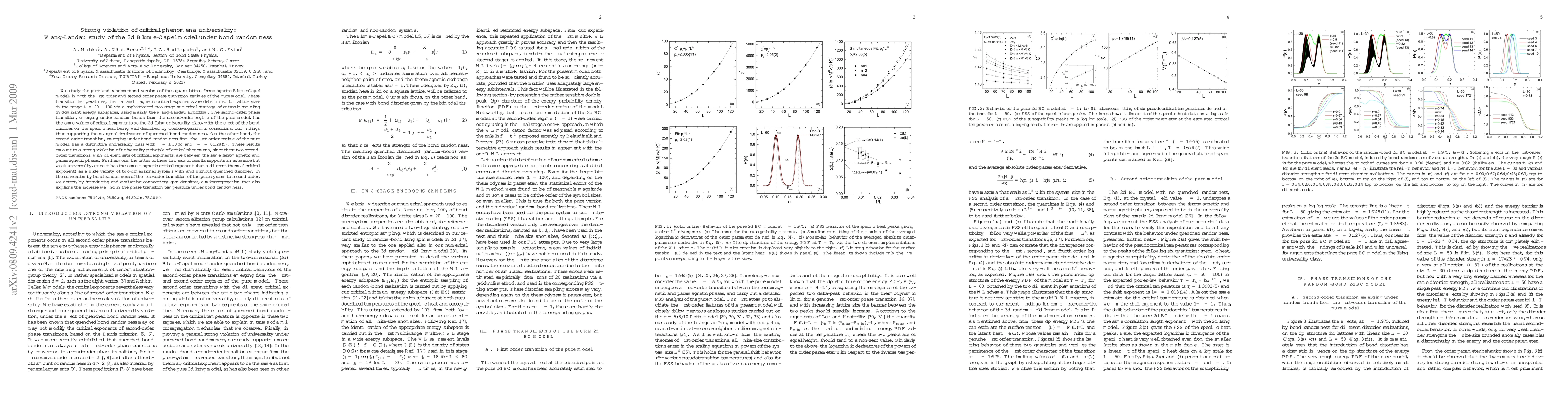 This paper explores the Blume-Capel model on a square lattice under both pure and random-bond conditions, revealing a strong violation of critical phenomena universality. The study finds distinct critical exponents for second-order transitions emerging from first-order and second-order regimes, indicating a deviation from the expected universality class.