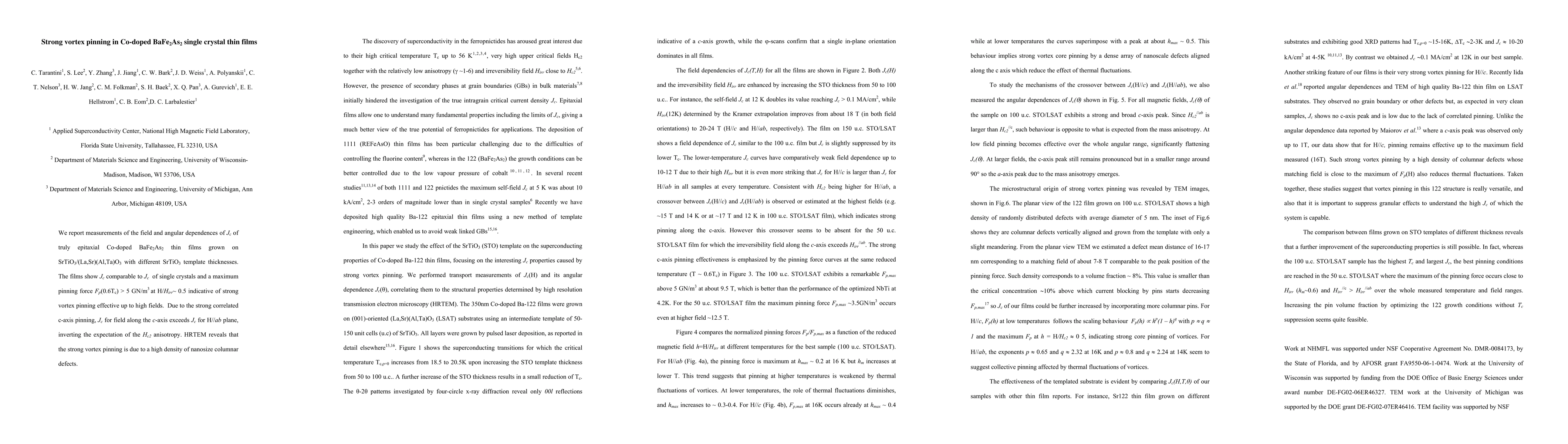 Researchers discovered strong vortex pinning in Co-doped BaFe2As2 thin films, which maintain high critical currents comparable to single crystals, and found that this effect is caused by a high density of nanoscale columnar defects.