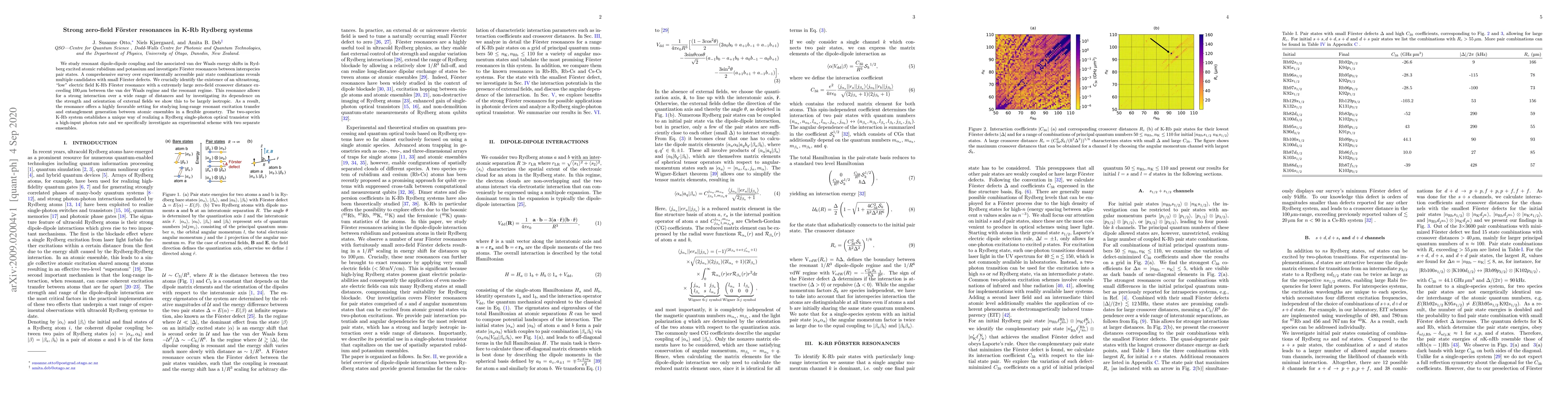 This paper investigates strong zero-field F\"orster resonances in K-Rb Rydberg systems, identifying an ultrastrong resonance with a large zero-field crossover distance, which facilitates long-range interaction over wide distances and supports the development of a Rydberg single-photon optical transistor.
