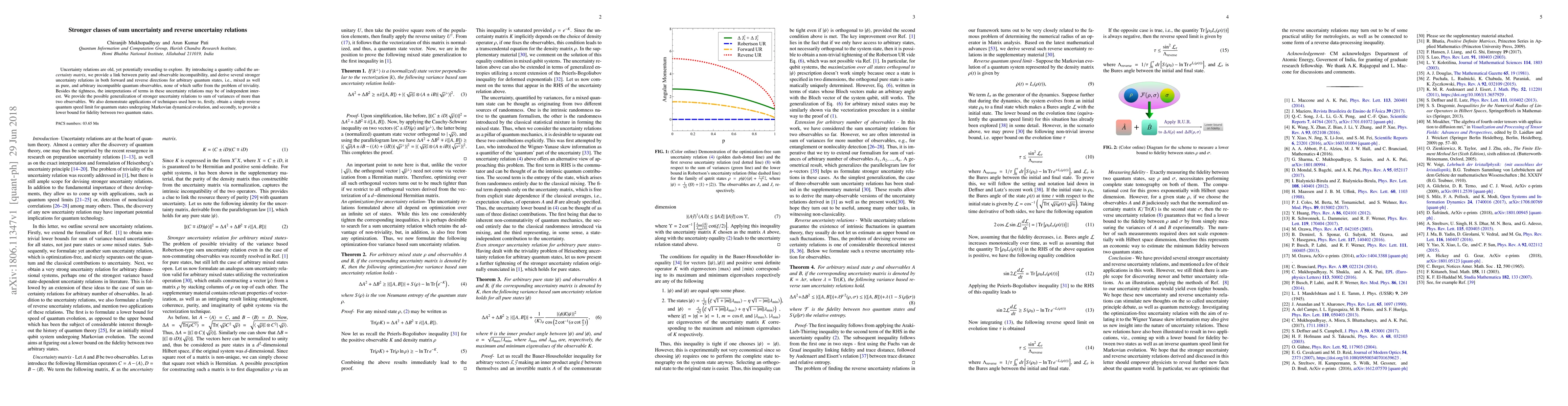 This paper introduces stronger uncertainty relations using an uncertainty matrix, linking purity and observable incompatibility for both mixed and pure quantum states. It generalizes these relations to sums of variances for multiple observables and applies the techniques to derive a reverse quantum speed limit and a fidelity lower bound.