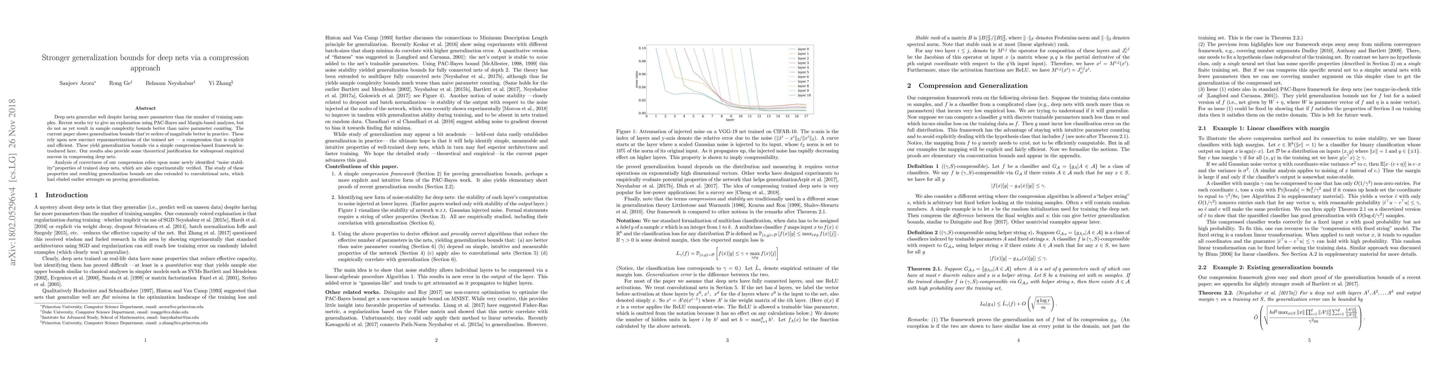 This paper presents improved generalization bounds for deep neural networks using a novel compression approach that efficiently reparametrizes trained networks. The compression method, based on "noise stability" properties, provides theoretical justification for the empirical success of network compression and offers significantly better sample complexity bounds compared to traditional methods.