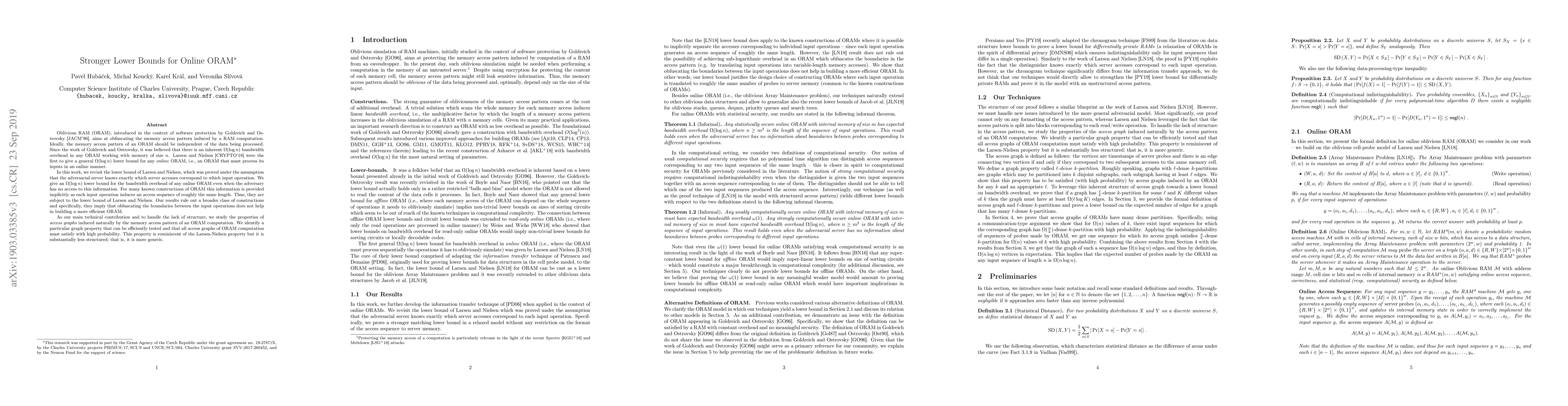 This paper strengthens the lower bounds for online Oblivious RAM (ORAM) by proving an $\Omega(\log n)$ bandwidth overhead even when the adversary lacks information about the mapping between input operations and server accesses. The authors introduce a new graph property inherent to ORAM access patterns to achieve this, ruling out a broader class of ORAM constructions.