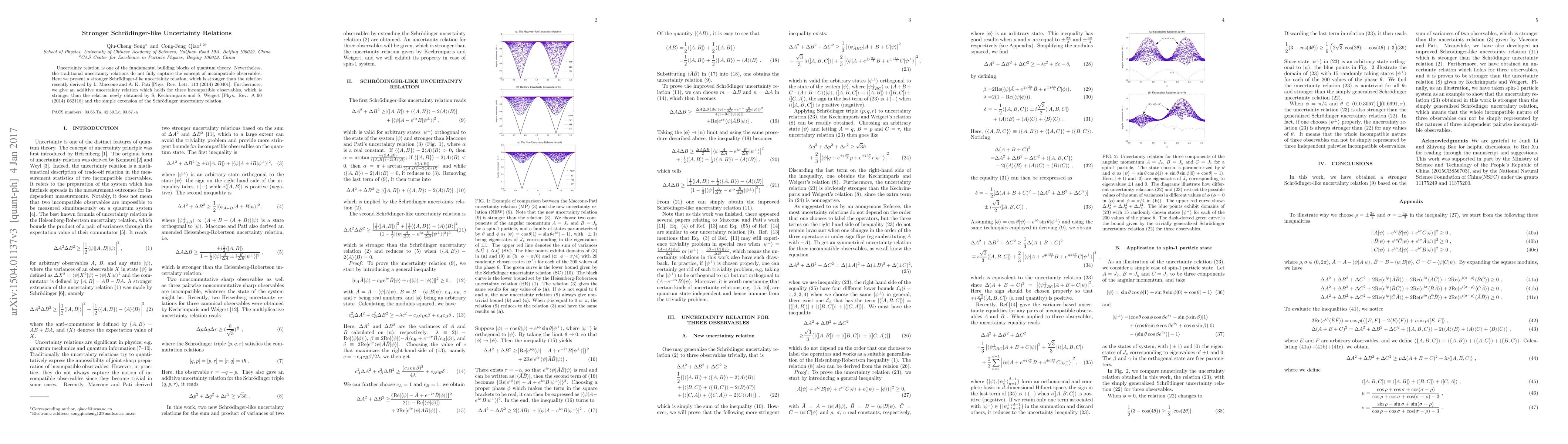 This paper introduces a stronger Schrödinger-like uncertainty relation that surpasses existing results by Maccone and Pati, and presents an additive uncertainty relation for three incompatible observables that outperforms prior work by Kechrimparis and Weigert.