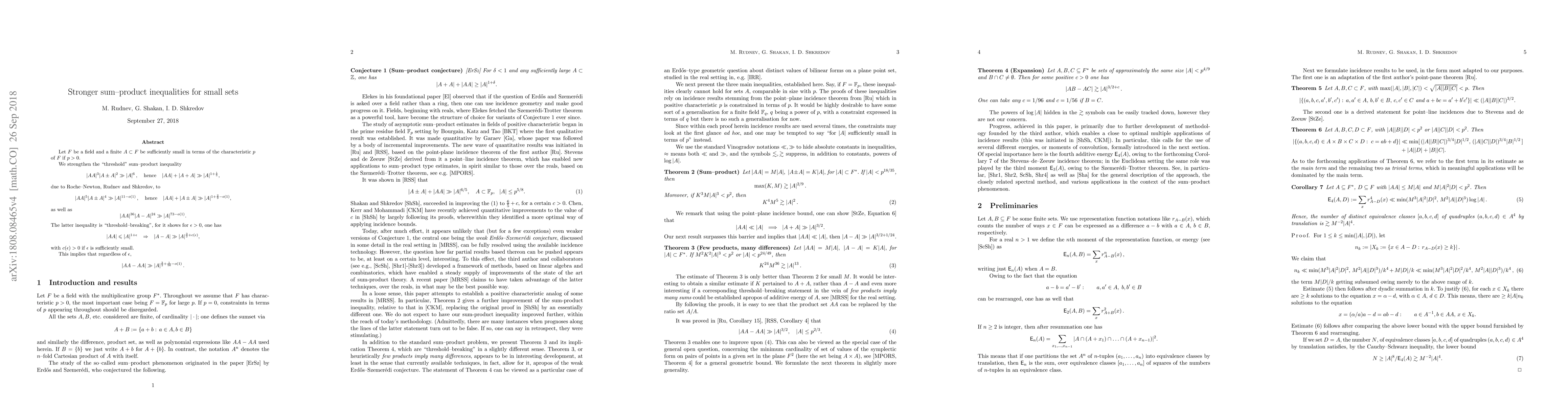 Researchers strengthened sum-product inequalities for small sets in a finite field, leading to new insights on the relationship between set sizes and their differences.