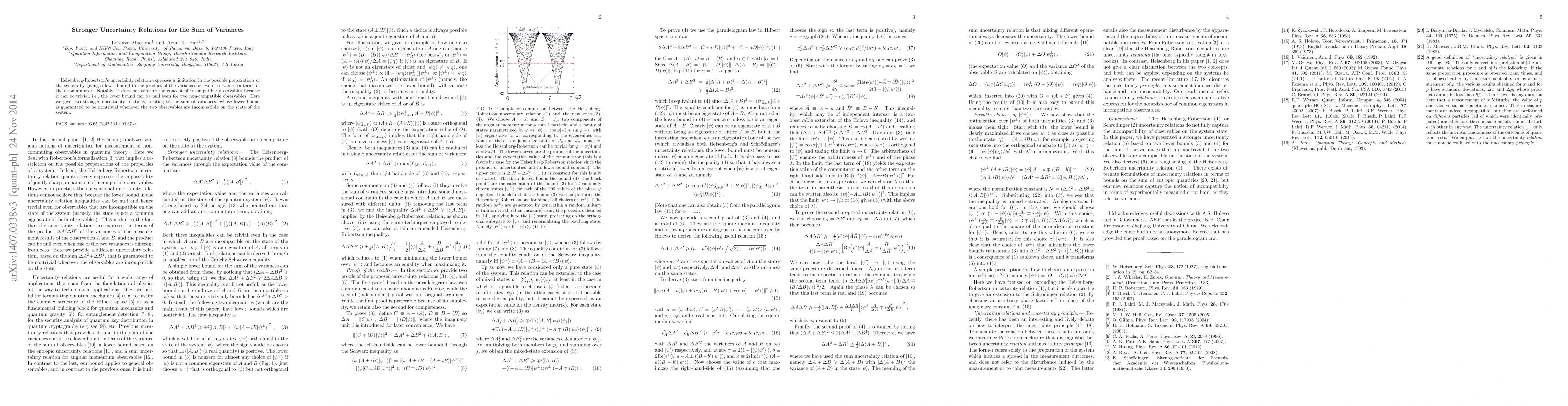 This paper presents two stronger uncertainty relations that provide a lower bound for the sum of variances of two observables, ensuring a nontrivial bound even for incompatible observables, thus addressing limitations of the original Heisenberg-Robertson uncertainty relation.
