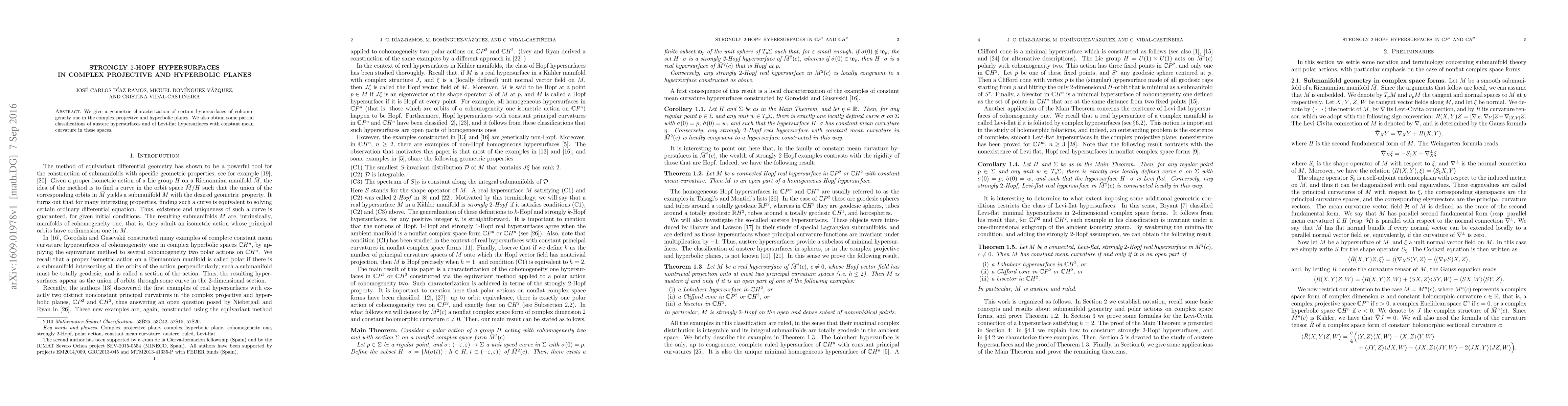 This paper characterizes cohomogeneity one hypersurfaces in complex projective and hyperbolic planes and provides partial classifications of austere and Levi-flat hypersurfaces with constant mean curvature within these geometric spaces.