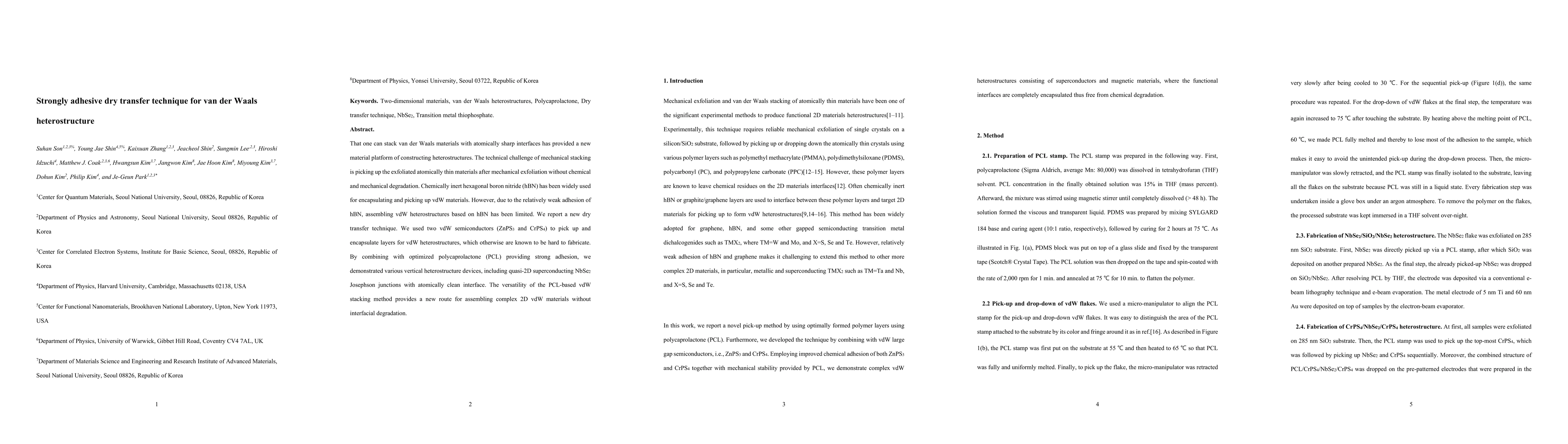 This paper introduces a novel dry transfer technique using polycaprolactone (PCL) for strongly adhering van der Waals (vdW) semiconductors like ZnPS3 and CrPS4, enabling the fabrication of complex vdW heterostructures with atomically sharp interfaces, overcoming the limitations of traditional hBN-based methods.
