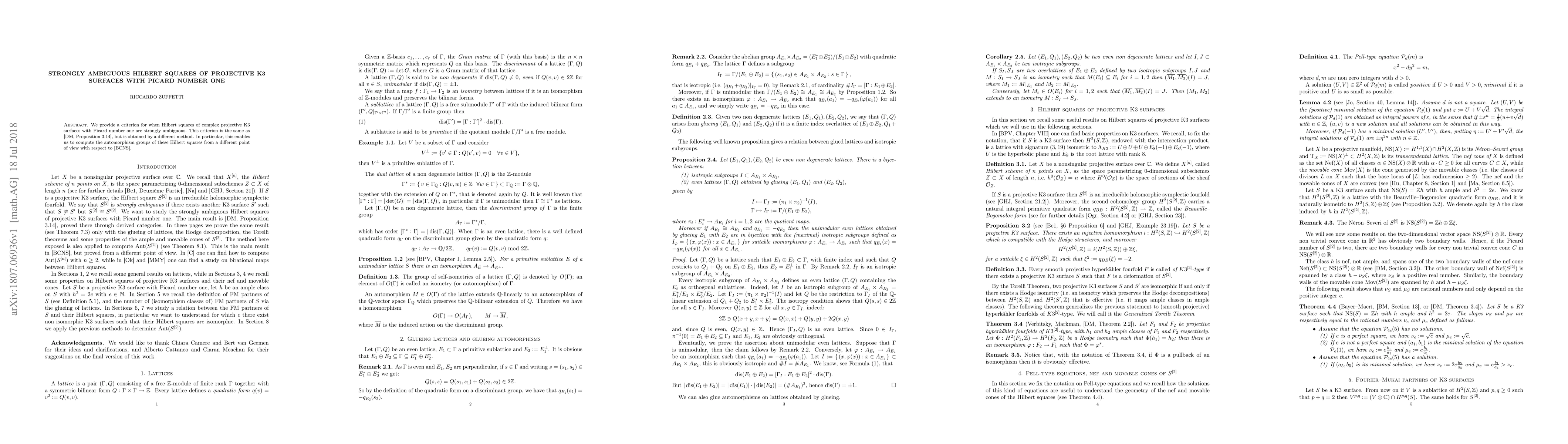 This paper presents a new criterion for identifying strongly ambiguous Hilbert squares in complex projective K3 surfaces with Picard number one, achieved through a distinct method. This leads to a novel computation approach for automorphism groups, contrasting previous work in [BCNS].