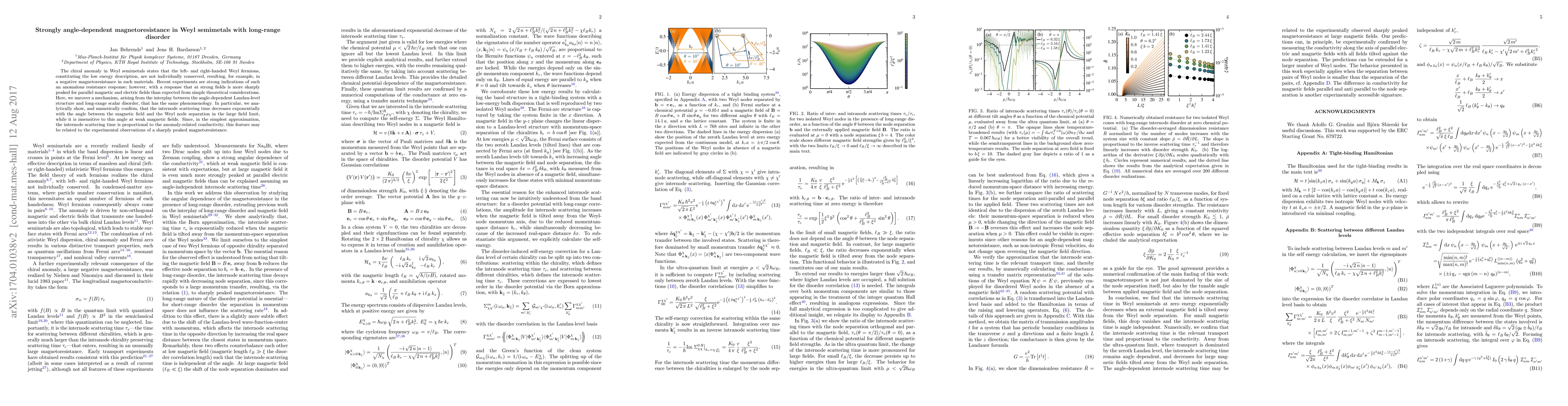 The chiral anomaly in Weyl semimetals states that the left- and right-handed Weyl fermions, constituting the low energy description, are not individually conserved, resulting, for example, in a negative magnetoresistance in such materials. Recent experiments see strong indications of such an anomalous resistance response; however, with a response that at strong fields is more sharply peaked for parallel magnetic and electric fields than expected from simple theoretical considerations. Here, we uncover a mechanism, arising from the interplay between the angle-dependent Landau level structure and long-range scalar disorder, that has the same phenomenology. In particular, we ana- lytically show, and numerically confirm, that the internode scattering time decreases exponentially with the angle between the magnetic field and the Weyl node separation in the large field limit, while it is insensitive to this angle at weak magnetic fields. Since, in the simplest approximation, the internode scattering time is proportional to the anomaly-related conductivity, this feature may be related to the experimental observations of a sharply peaked magnetoresistance.