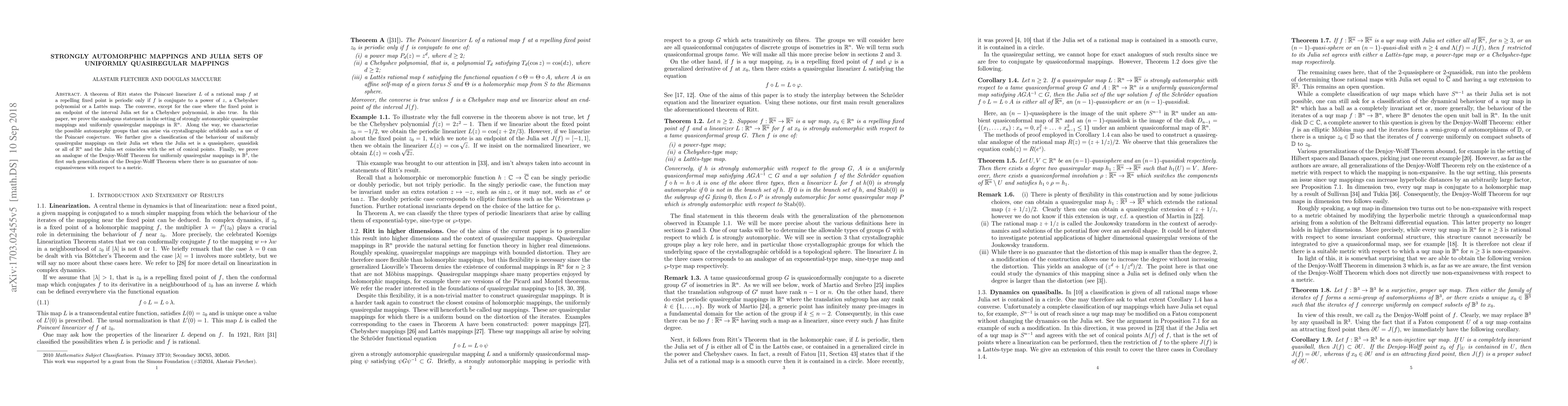 A theorem of Ritt states the a linearizer of a holomorphic function at a repelling fixed point is periodic only if the holomorphic map is conjugate to a power of $z$, a Chebyshev polynomial or a Latt\`es map. The converse, except for some exceptions, is also true. In this paper, we prove the analogous statement in the setting of strongly automorphic quasiregular mappings and uniformly quasiregular mappings in $\mathbb{R}^n$. Along the way, we characterize the possible automorphy groups that can arise via crystallographic orbifolds and a use of the Poincar\'e conjecture. We further give a classification of the behaviour of uniformly quasiregular mappings on their Julia set when the Julia set is a quasisphere, quasidisk or all of $\mathbb{R}^n$ and the Julia set coincides with the set of conical points. Finally, we prove an analogue of the Denjoy-Wolff Theorem for uniformly quasiregular mappings in $\mathbb{B}^3$, the first such generalization of the Denjoy-Wolff Theorem where there is no guarantee of non-expansiveness with respect to a metric.