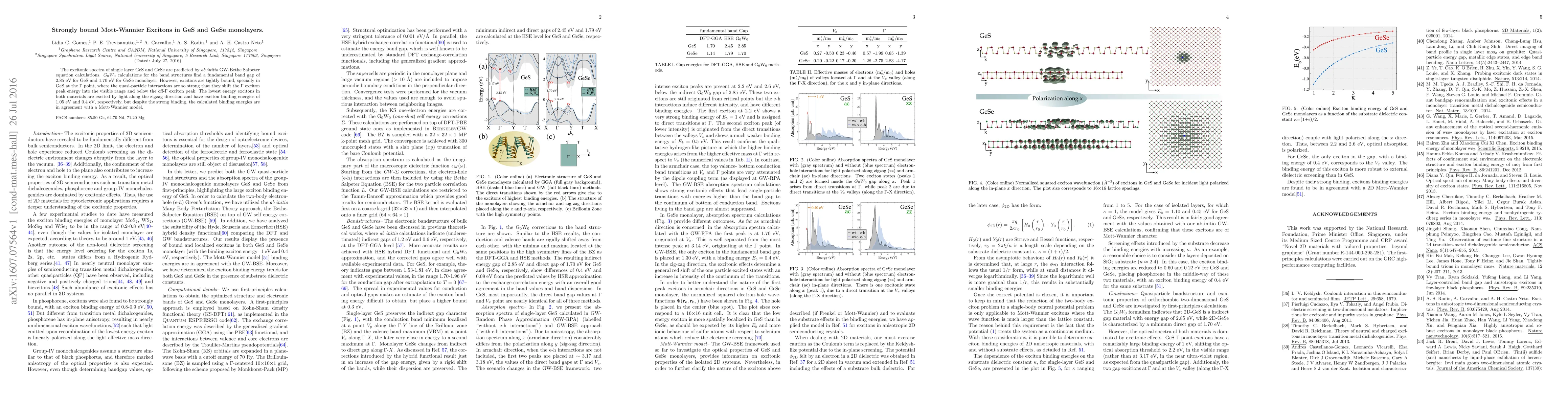 Researchers predict strongly bound excitons in GeS and GeSe monolayers, with exciton binding energies of 1.05 eV and 0.4 eV, which could have implications for optoelectronic applications.