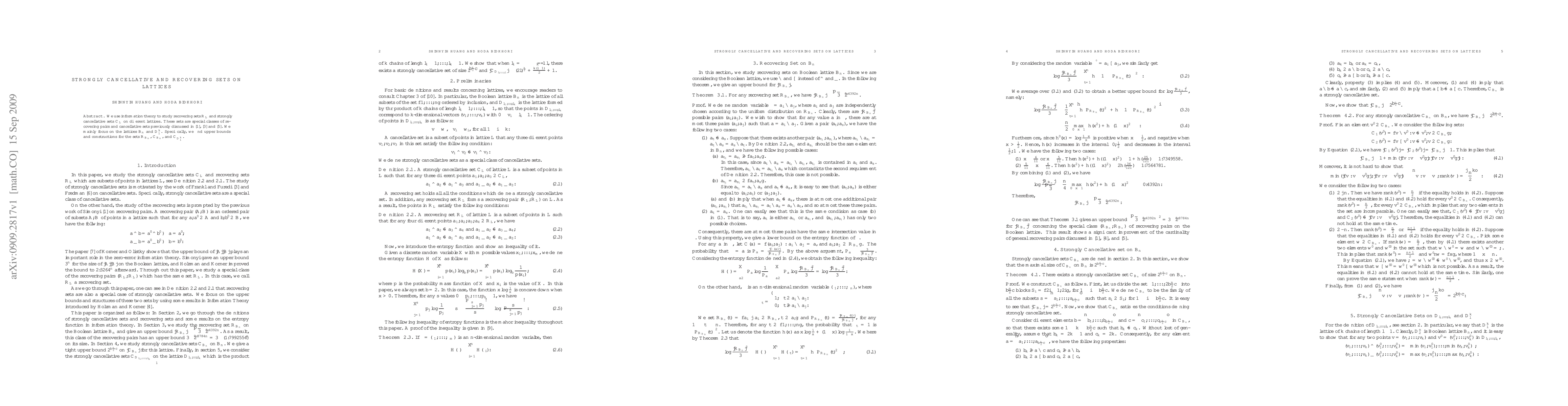 We use information theory to study recovering sets $\R_L$ and strongly cancellative sets $\C_L$ on different lattices. These sets are special classes of recovering pairs and cancellative sets previously discussed in [1], [3] and [5]. We mainly focus on the lattices $B_n$ and $D_{l}^{k}$. Specifically, we find upper bounds and constructions for the sets $\R_{B_n}$, $\C_{B_n}$, and $\C_{D_{l}^{k}}$.
