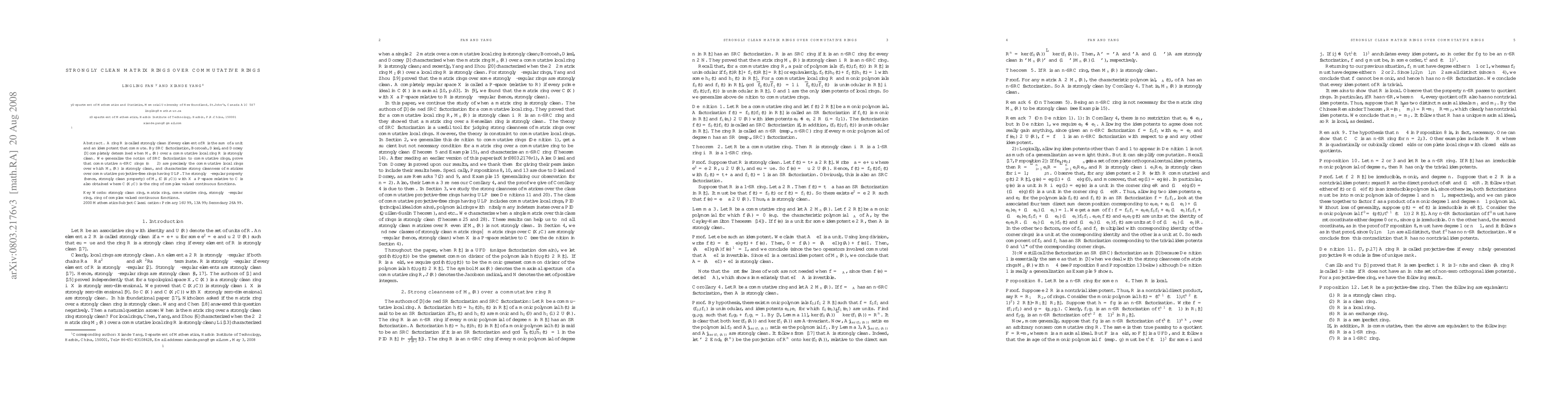 A ring $R$ is called strongly clean if every element of $R$ is the sum of a unit and an idempotent that commute. By {\rm SRC} factorization, Borooah, Diesl, and Dorsey \cite{BDD051} completely determined when ${\mathbb M}_n(R)$ over a commutative local ring $R$ is strongly clean. We generalize the notion of {\rm SRC} factorization to commutative rings, prove that commutative $n$-{\rm SRC} rings $(n\ge 2)$ are precisely the commutative local rings over which ${\mathbb M}_n(R)$ is strongly clean, and characterize strong cleanness of matrices over commutative projective-free rings having {\rm ULP}. The strongly $\pi$-regular property (hence, strongly clean property) of ${\mathbb M}_n(C(X,{\mathbb C}))$ with $X$ a {\rm P}-space relative to ${\mathbb C}$ is also obtained where $C(X,{\mathbb C})$ is the ring of complex valued continuous functions.