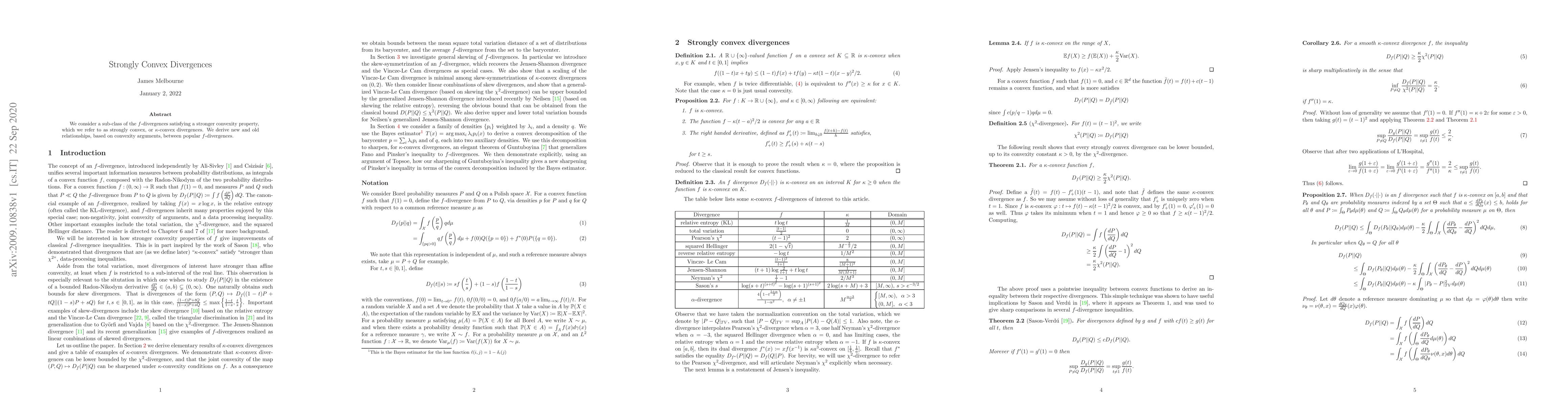 This paper explores a subclass of $f$-divergences termed strongly convex or $\kappa$-convex divergences, deriving new and existing relationships between them using convexity arguments.