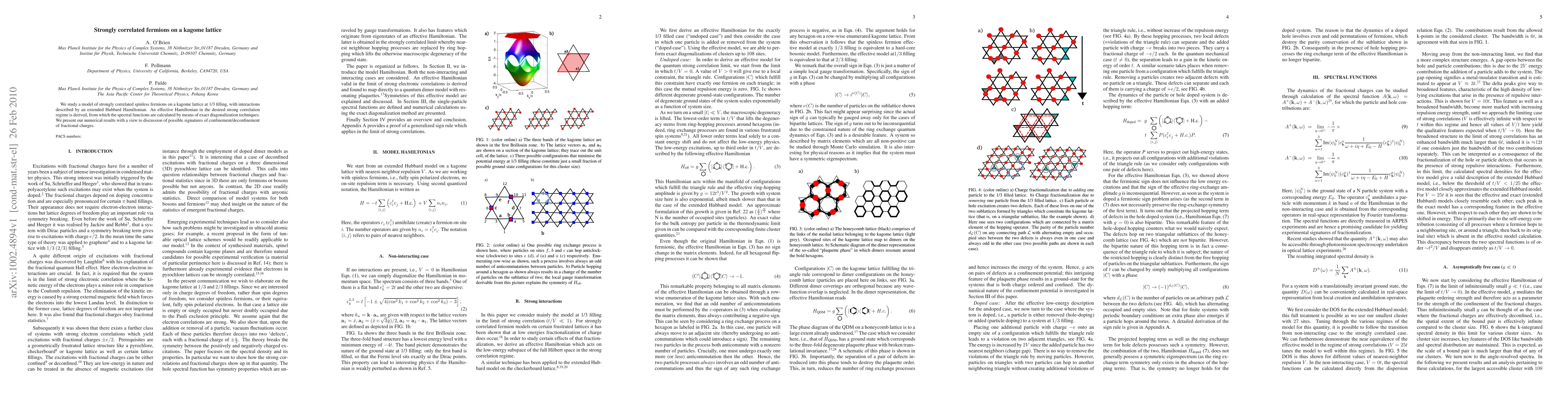 This paper investigates strongly correlated spinless fermions on a kagome lattice at 1/3 filling using an extended Hubbard Hamiltonian. It derives an effective Hamiltonian in the strong correlation regime and uses exact diagonalization to calculate spectral functions, discussing potential signs of confinement/deconfinement of fractional charges.