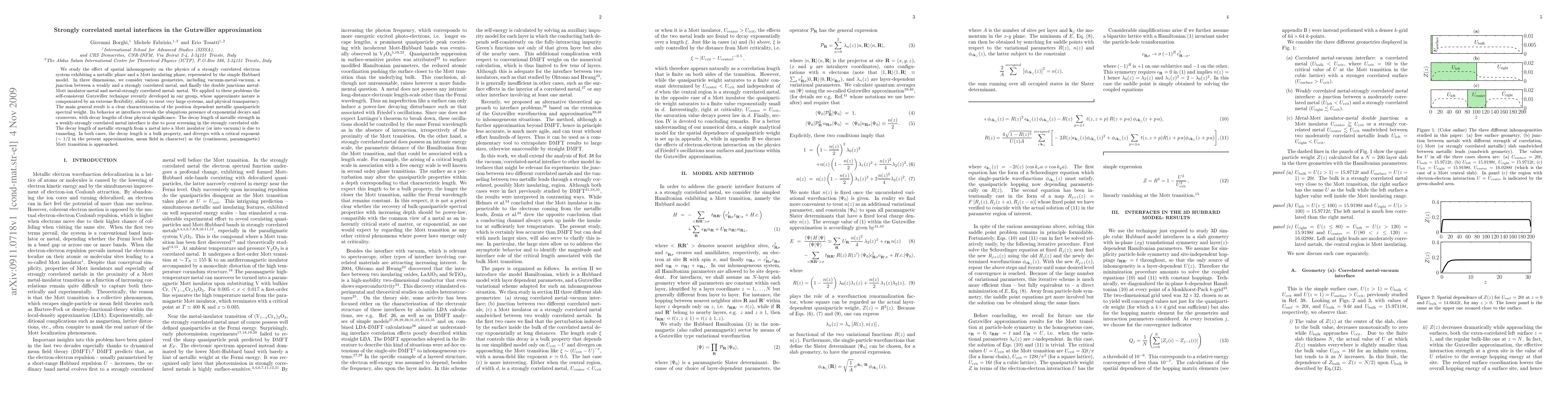This paper investigates the impact of spatial inhomogeneity on strongly correlated electron systems using the self-consistent Gutzwiller approximation, revealing exponential decays and crossovers in metallic quasiparticle spectral weight at interfaces, with decay lengths influenced by poor screening and tunneling effects. The study characterizes the metallic strength decay near interfaces between weakly and strongly correlated metals, and into Mott insulators, showing bulk-dependent critical behavior.