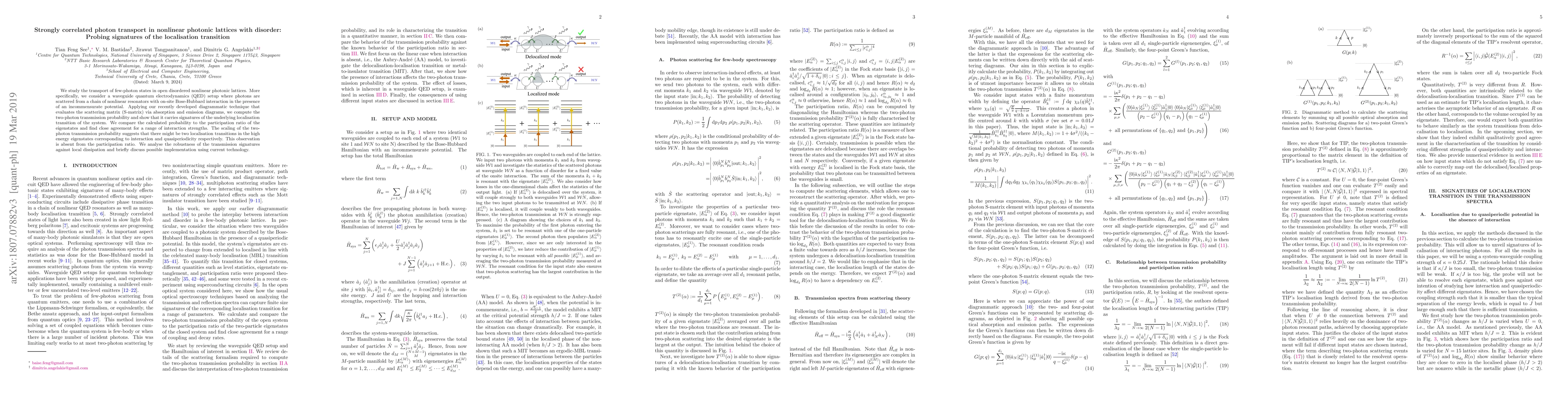 We study the transport of few-photon states in an open disordered nonlinear photonic lattice. More specifically, we consider a waveguide quantum electrodynamics (QED) setup where photons are scattered from a chain of nonlinear resonators with onsite Bose-Hubbard interaction in the presence of an incommensurate potential. Applying our recently developed diagrammatic technique that represents scattering matrix (S-matrix) with scattering diagrams and associated propagators, we compute the two-photon transmission probability and show that it carries signatures of the underlying many-body localization transition of the system. We compare the calculated probability to the participation ratio of the eigenstates and find close agreement for a range of interaction strengths. We analyze the robustness of the transmission signatures against local dissipation and briefly discuss possible implementation using current superconducting circuit technology.