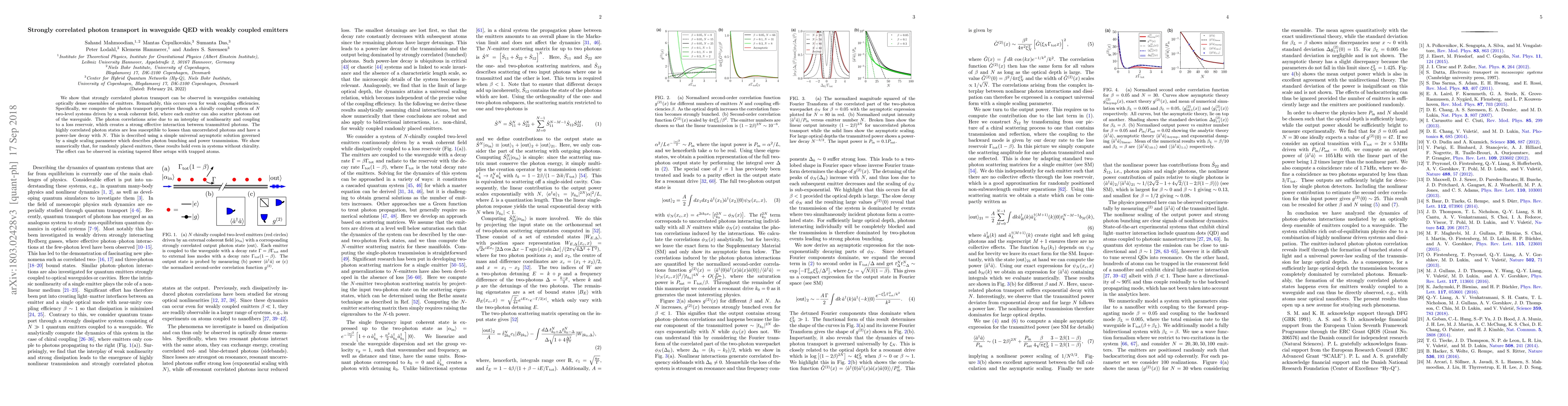 This paper demonstrates that strongly correlated photon transport can occur in waveguide QED systems with weakly coupled emitters, driven by nonlinearity and coupling to a loss reservoir. The resulting photon states exhibit power-law decay and enhanced resilience to losses, described by a universal asymptotic solution.
