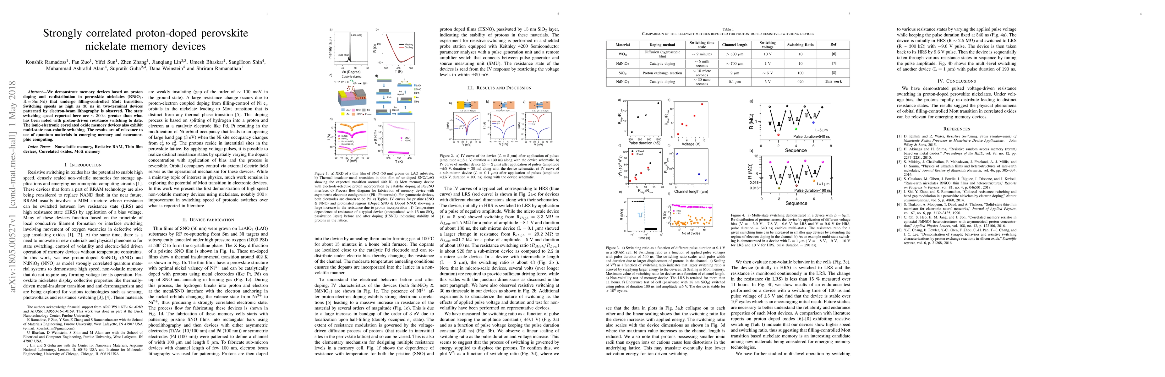 Researchers developed memory devices using proton-doped perovskite nickelates with fast switching speeds of up to 30 ns, exceeding previous reports by 300X, enabling multi-state non-volatile switching relevant to quantum computing applications.