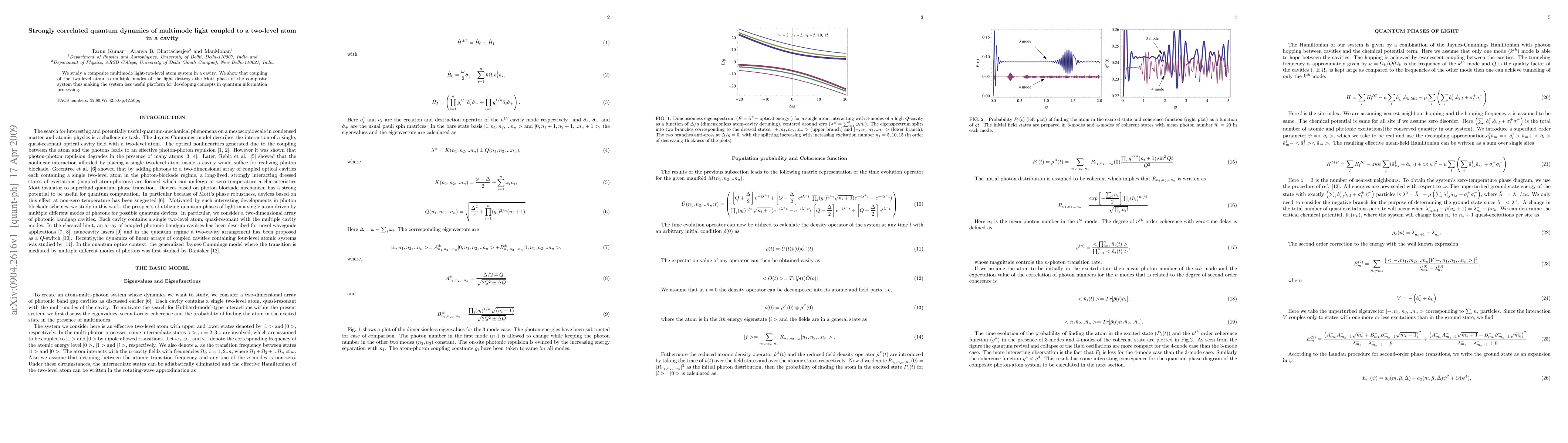 We study a composite multimode light-two-level atom system in a cavity. We show that coupling of the two-level atom to multiple modes of the light destroys the Mott phase of the composite system thus making the system less useful platform for developing concepts in quantum information processing.