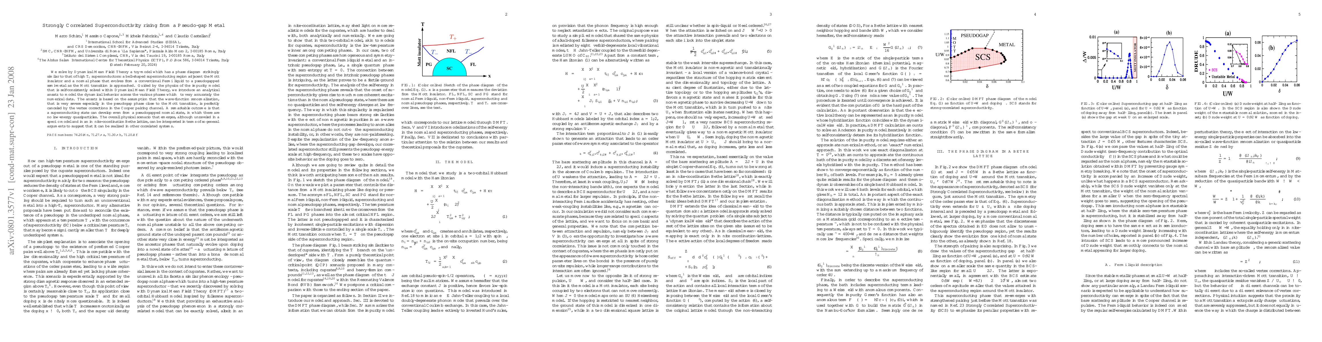 We solve by Dynamical Mean Field Theory a toy-model which has a phase diagram strikingly similar to that of high $T_c$ superconductors: a bell-shaped superconducting region adjacent the Mott insulator and a normal phase that evolves from a conventional Fermi liquid to a pseudogapped semi-metal as the Mott transition is approached. Guided by the physics of the impurity model that is self-consistently solved within Dynamical Mean Field Theory, we introduce an analytical ansatz to model the dynamical behavior across the various phases which fits very accurately the numerical data. The ansatz is based on the assumption that the wave-function renormalization, that is very severe especially in the pseudogap phase close to the Mott transition, is perfectly canceled by the vertex corrections in the Cooper pairing channel.A remarkable outcome is that a superconducting state can develop even from a pseudogapped normal state, in which there are no low-energy quasiparticles. The overall physical scenario that emerges, although unraveled in a specific model and in an infinite-coordination Bethe lattice, can be interpreted in terms of so general arguments to suggest that it can be realized in other correlated systems.