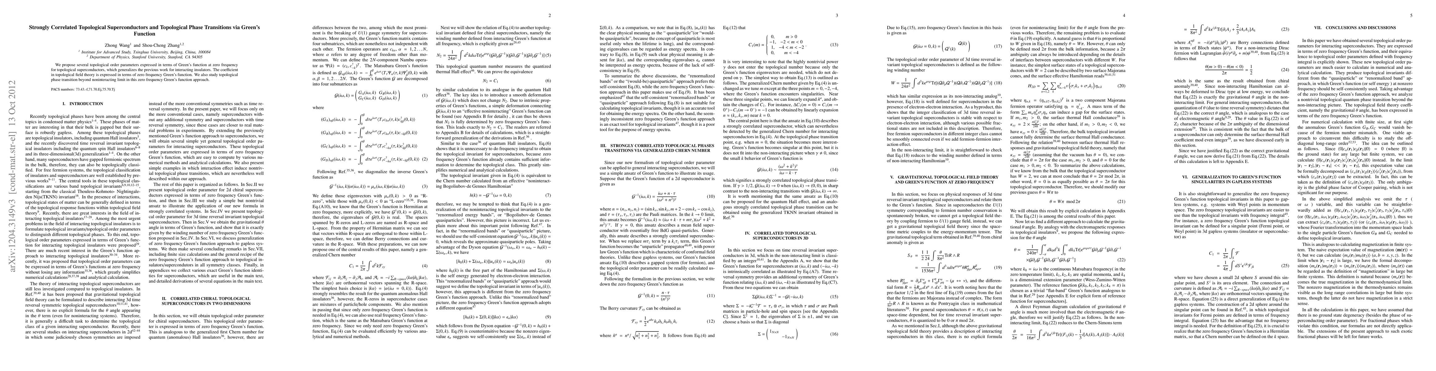 Summary: This paper introduces topological order parameters for strongly correlated topological superconductors using zero frequency Green's functions, extending previous methods for insulators, and examines topological phase transitions beyond the noninteracting limit.