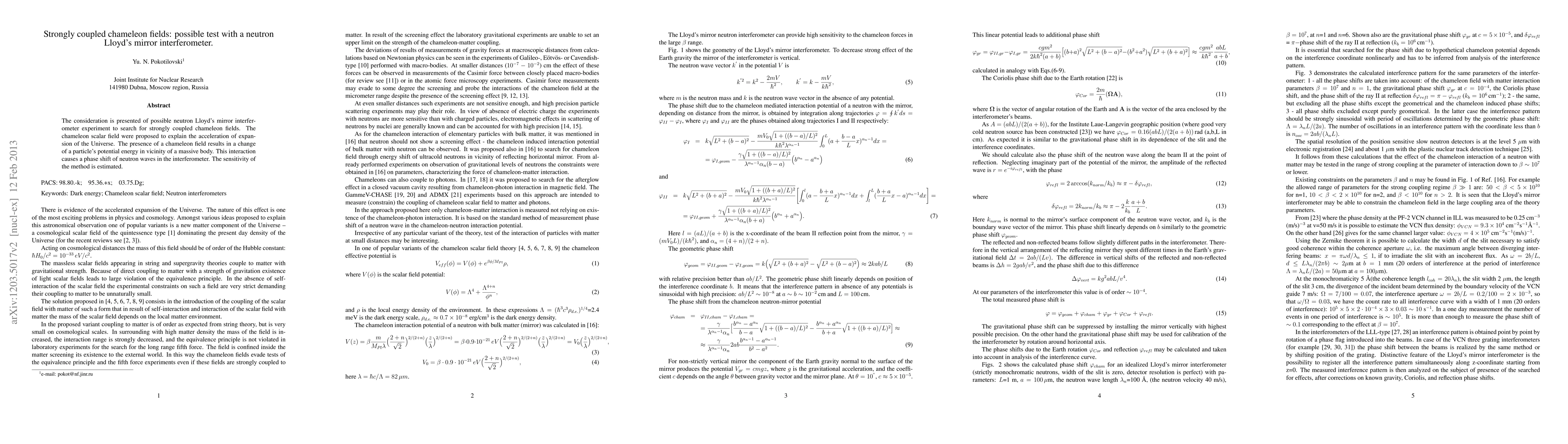 This paper explores the potential of a neutron Lloyd's mirror interferometer to detect strongly coupled chameleon fields, which are hypothesized to explain cosmic acceleration and may cause short-range interactions affecting neutron wave phase shifts. Sensitivity estimates suggest the experiment could provide valuable insights into these fields.