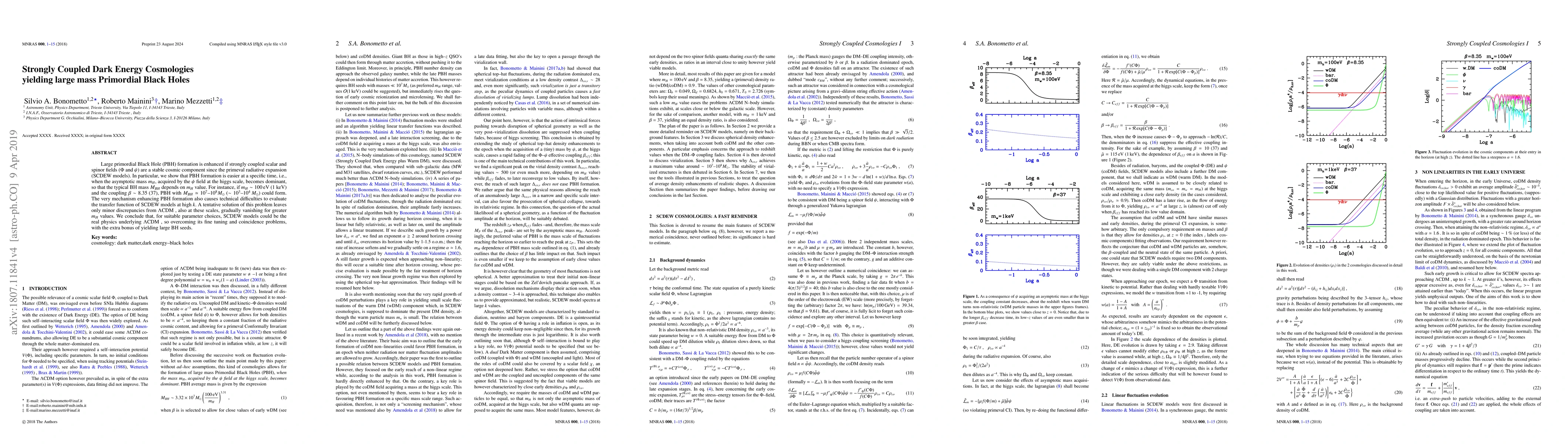 Large primordial Black Hole (PBH) formation is enhanced if strongly coupled scalar and spinor fields ($\Phi$ and $\psi$) are a stable cosmic component since the primeval radiative expansion (SCDEW models). In particular, we show that PBH formation is easier at a specific time, i.e., when the asymptotic mass $m_H$, acquired by the $\psi$ field at the higgs scale, becomes dominant, so that the typical BH mass $M_{BH}$ depends on $m_H$ value. For instance, if $m_H \sim 100\,$ eV $(1$ keV$)$ and the coupling $\beta \sim 8.35 (37)$, PBH with $M_{BH} \simeq 10^7-10^8 $ $(10^3-10^4)\, M_\odot$ could form. The very mechanism enhancing PBH formation also causes technical difficulties to evaluate the transfer function of SCDEW models at high $k$. A tentative solution of this problem leaves only minor discrepancies from $\Lambda$CDM, also at these scales, gradually vanishing for greater $m_H$ values. We conclude that, for suitable parameter choices, SCDEW models could be the real physics underlying $\Lambda$ CDM, so overcoming its fine tuning and coincidence problems, with the extra bonus of yielding large BH seeds.