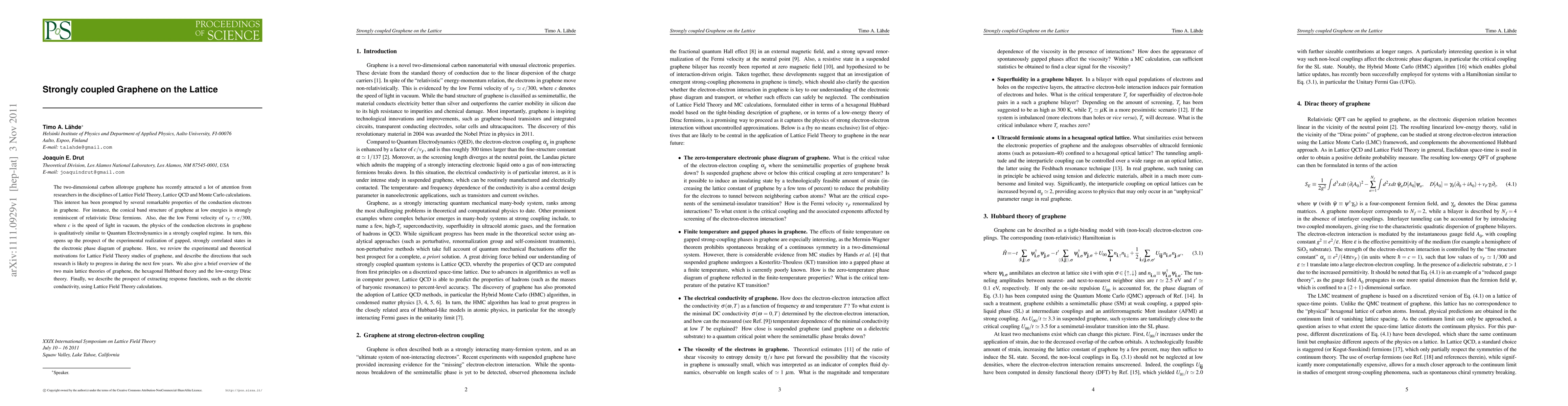 Researchers explore the potential of lattice field theory to study graphene's properties, including its strong coupling to a lattice and the possibility of experimental realization of gapped, strongly correlated states. The paper reviews motivations, theories, and methods for extracting response functions in graphene.