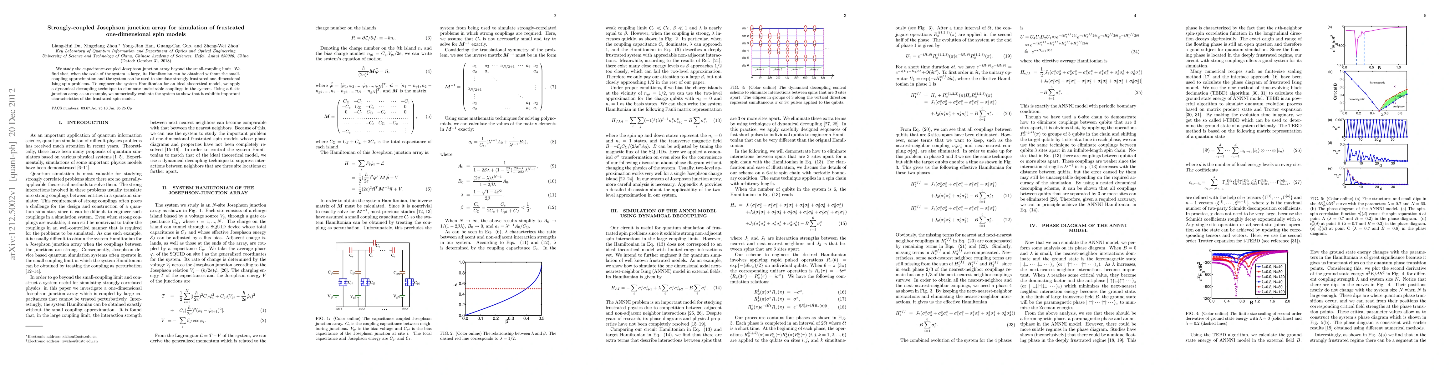 This paper explores a capacitance-coupled Josephson junction array to simulate strongly frustrated one-dimensional Ising spin models, demonstrating that the system's Hamiltonian can be derived without small-coupling approximations. The authors employ dynamical decoupling to refine the system and numerically validate a 6-site array's alignment with the theoretical spin model characteristics.