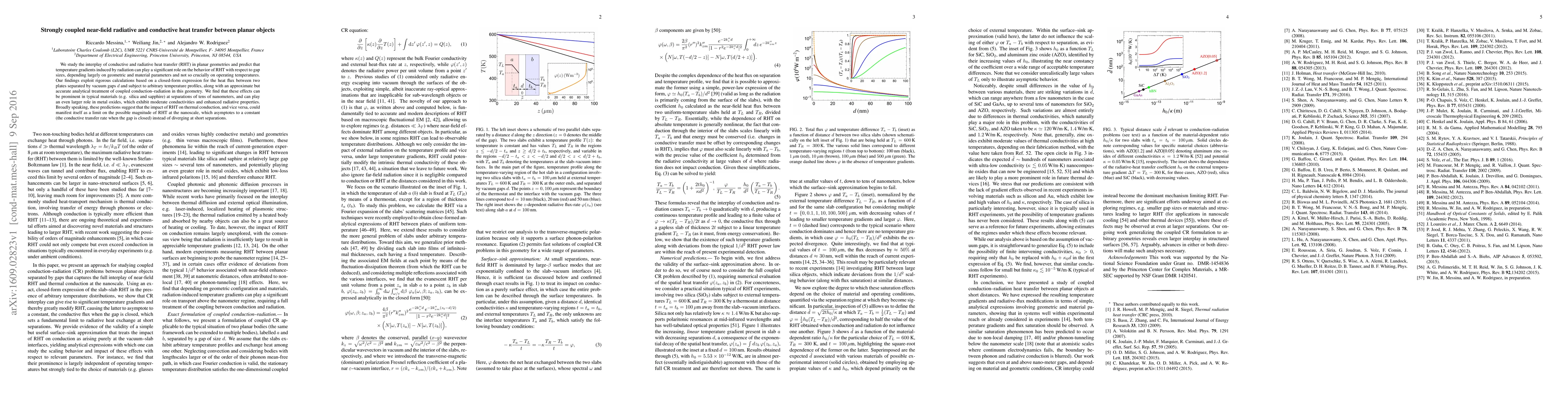 This paper investigates the interaction between conductive and radiative heat transfer in planar geometries, finding that temperature gradients induced by radiation significantly influence heat transfer behavior, especially at nanoscale separations. The study reveals that these effects are prominent in materials like silica and sapphire, and more pronounced in metal oxides, suggesting a limit on radiative heat transfer at very small gaps.