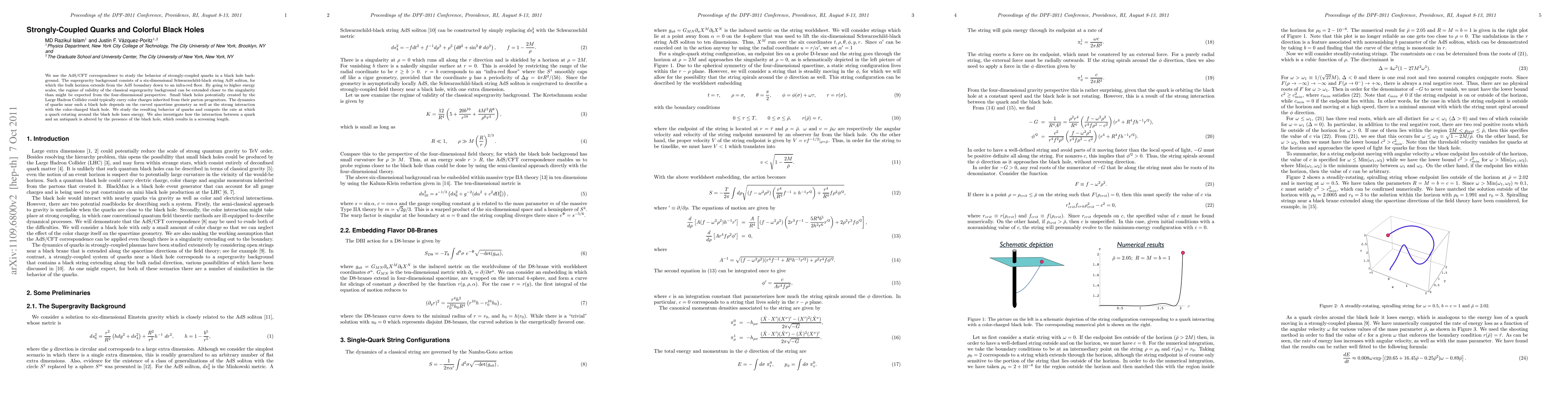 This paper explores the dynamics of strongly-coupled quarks in the vicinity of a color-charged black hole using the AdS/CFT correspondence. It finds that the curved spacetime geometry and strong interactions with the black hole influence quark behavior, including energy loss rates and altered quark-antiquark interactions.