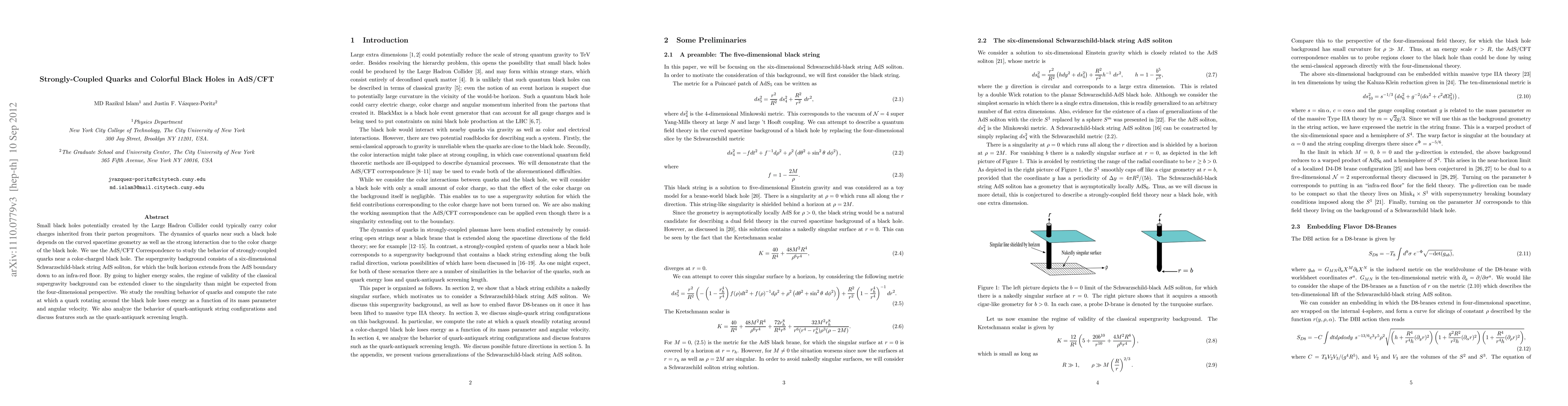The paper presents a detailed analysis of quark dynamics near color-charged black holes using the AdS/CFT correspondence, providing new insights into energy loss and quark-antiquark string configurations in such extreme environments.