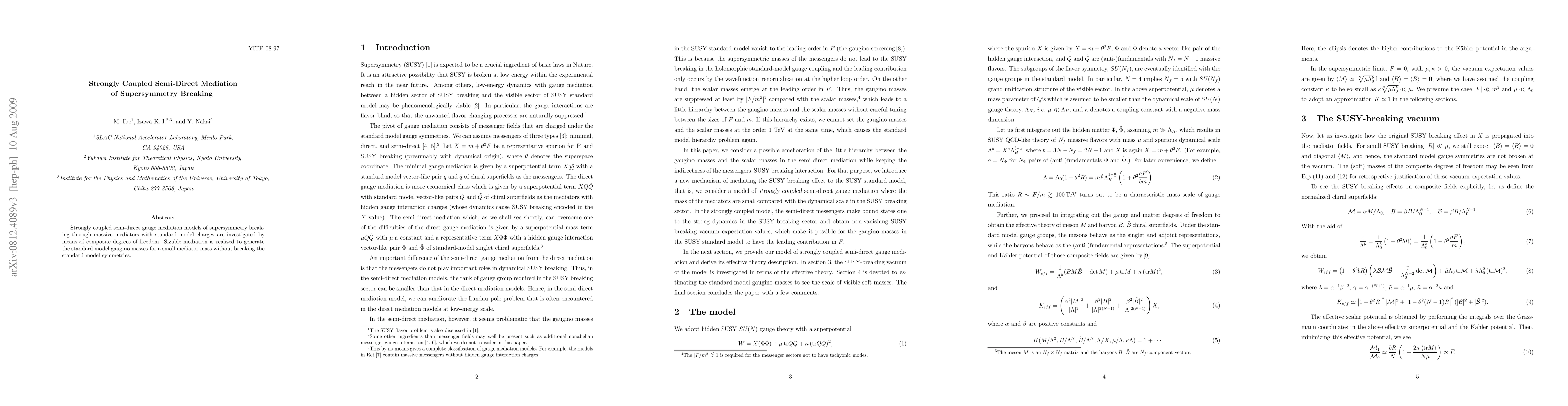 This paper explores strongly coupled semi-direct mediation models where supersymmetry breaking is transmitted via massive, Standard Model-charged mediators, utilizing composite degrees of freedom to achieve sizable mediation and standard model gaugino masses without violating Standard Model symmetries.