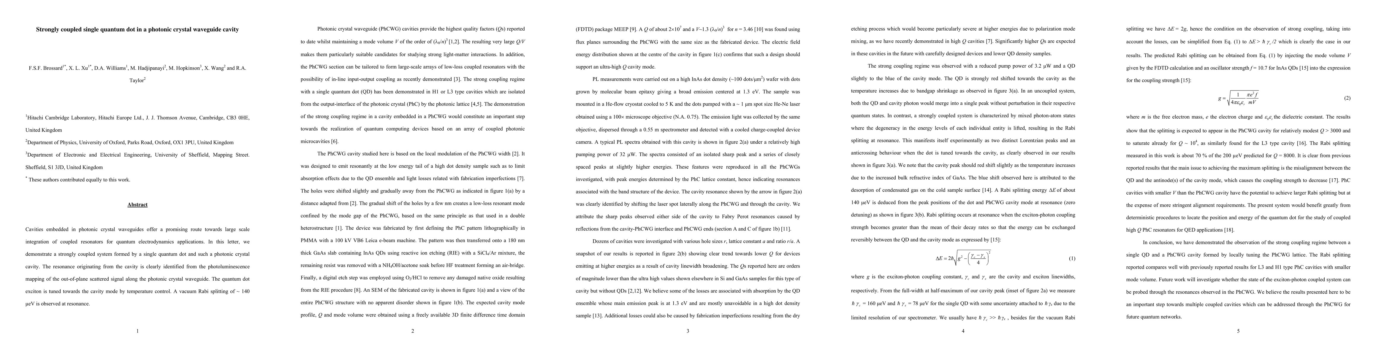 This research demonstrates a strongly coupled quantum dot and photonic crystal cavity system, achieving a vacuum Rabi splitting of ~140 µeV. Photoluminescence mapping reveals the cavity's resonance along the waveguide, showcasing the potential for quantum electrodynamics applications.