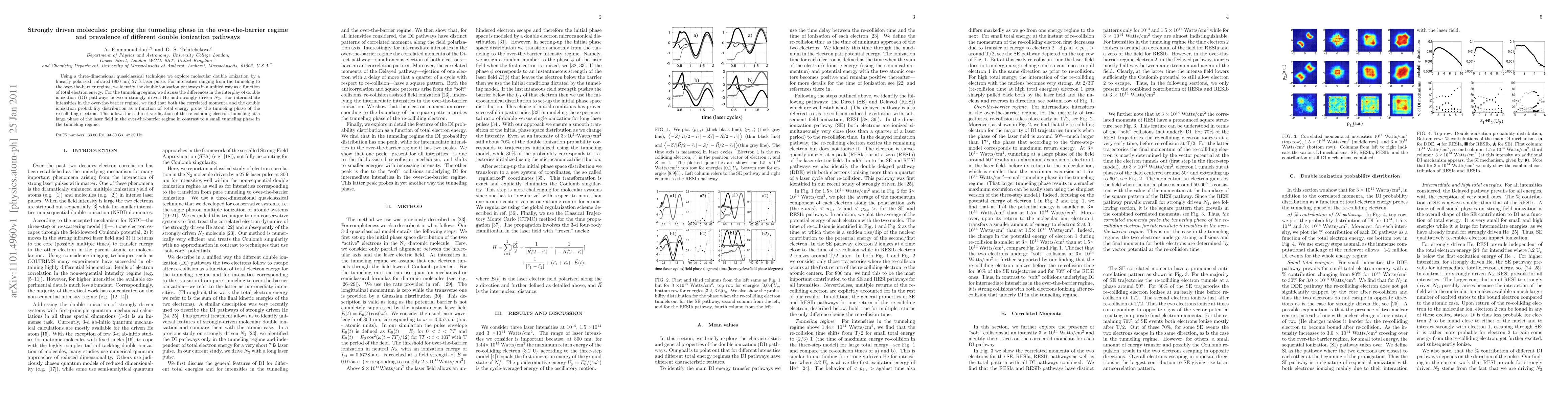 Using a three-dimensional quasiclassical technique we explore molecular double ionization by a linearly polarized, infrared (800~nm) 27~fs laser pulse. For intensities ranging from the tunneling to the over-the-barrier regime, we identify the double ionization pathways in a unified way as a function of total electron energy. For the tunneling regime, we discuss the differences in the interplay of double ionization (DI) pathways between strongly driven He and strongly driven $N_{2}$. For intermediate intensities in the over-the-barrier regime, we find that both the correlated momenta and the double ionization probability distribution as a function of total energy probe the tunneling phase of the re-colliding electron. This allows for a direct verification of the re-colliding electron tunneling at a large phase of the laser field in the over-the-barrier regime in contrast to a small tunneling phase in the tunneling regime.