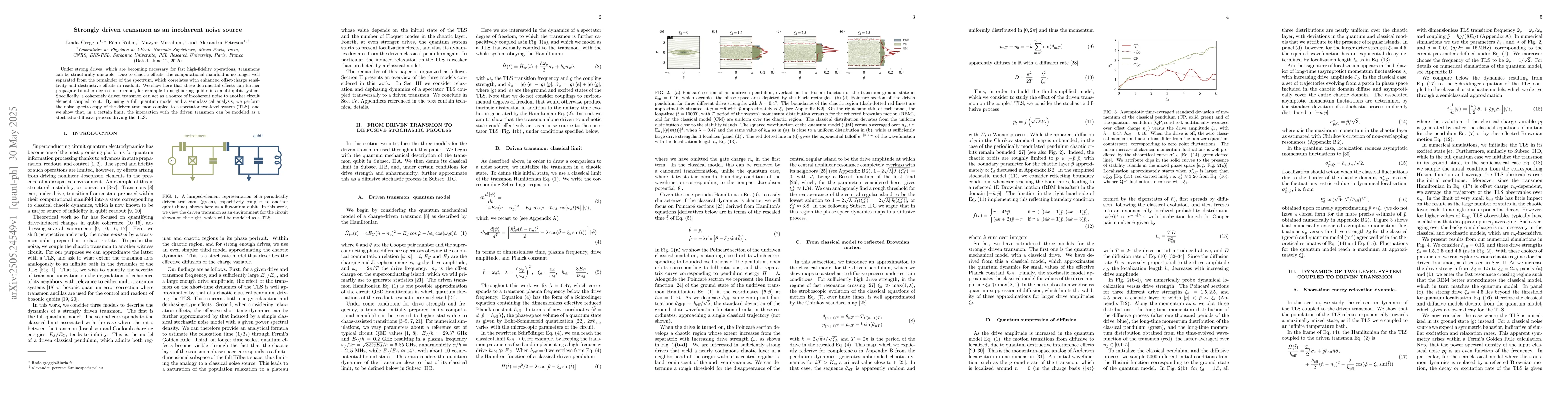Under strong drives, which are becoming necessary for fast high-fidelity operations, transmons can be structurally unstable. Due to chaotic effects, the computational manifold is no longer well separated from the remainder of the spectrum, which correlates with enhanced offset-charge sensitivity and destructive effects in readout. We show here that these detrimental effects can further propagate to other degrees of freedom, for example to neighboring qubits in a multi-qubit system. Specifically, a coherently driven transmon can act as a source of incoherent noise to another circuit element coupled to it. By using a full quantum model and a semiclassical analysis, we perform the noise spectroscopy of the driven transmon coupled to a spectator two-level system (TLS), and we show that, in a certain limit, the interaction with the driven transmon can be modeled as a stochastic diffusive process driving the TLS.