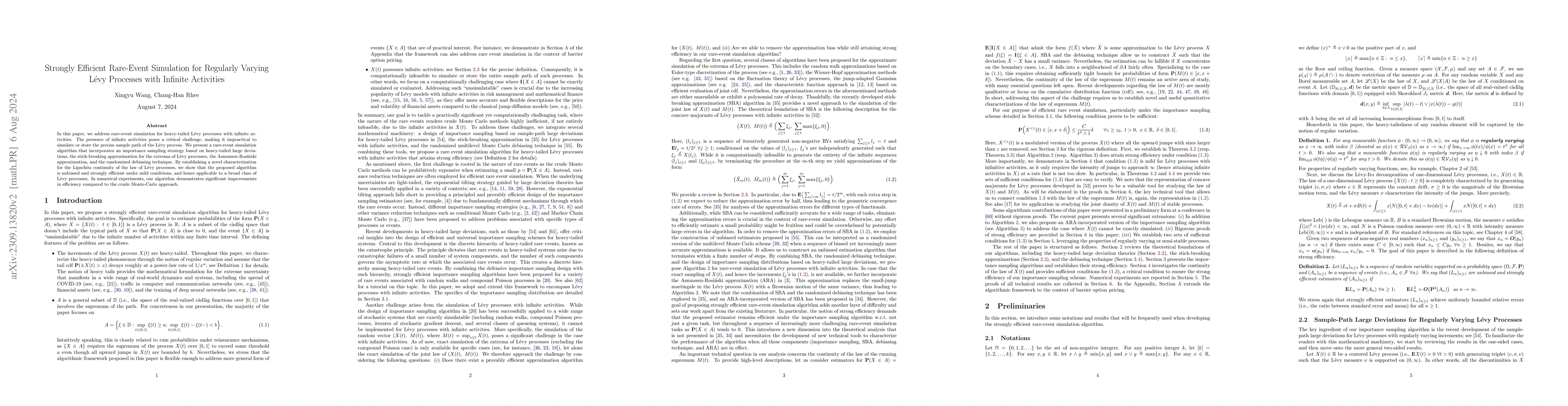 This paper proposes a rare-event simulation algorithm for heavy-tailed Lévy processes with infinite activities, combining importance sampling, large deviations, and debiasing techniques. The algorithm is shown to be unbiased and strongly efficient, significantly outperforming the crude Monte-Carlo method in numerical experiments.