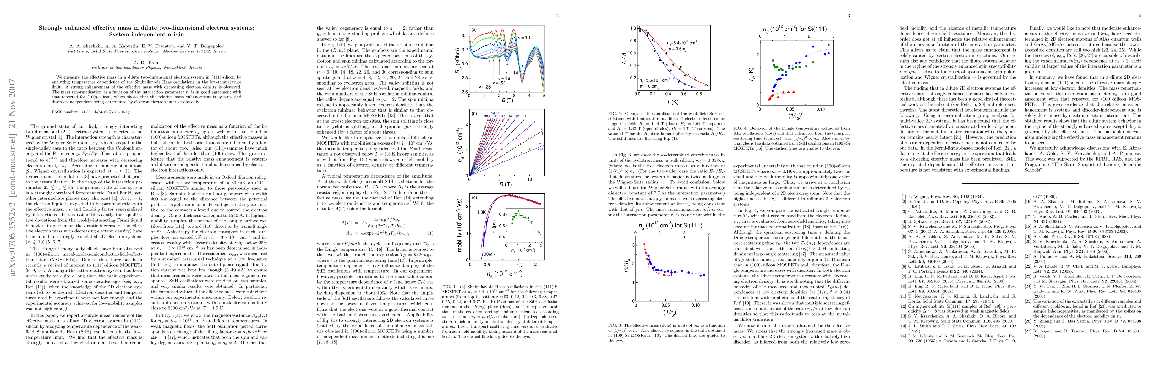 This paper reports a strong enhancement of effective mass in dilute two-dimensional electron systems in (111)-silicon, observed through temperature-dependent Shubnikov-de Haas oscillations. The findings indicate that the mass renormalization is system-independent and primarily determined by electron-electron interactions.