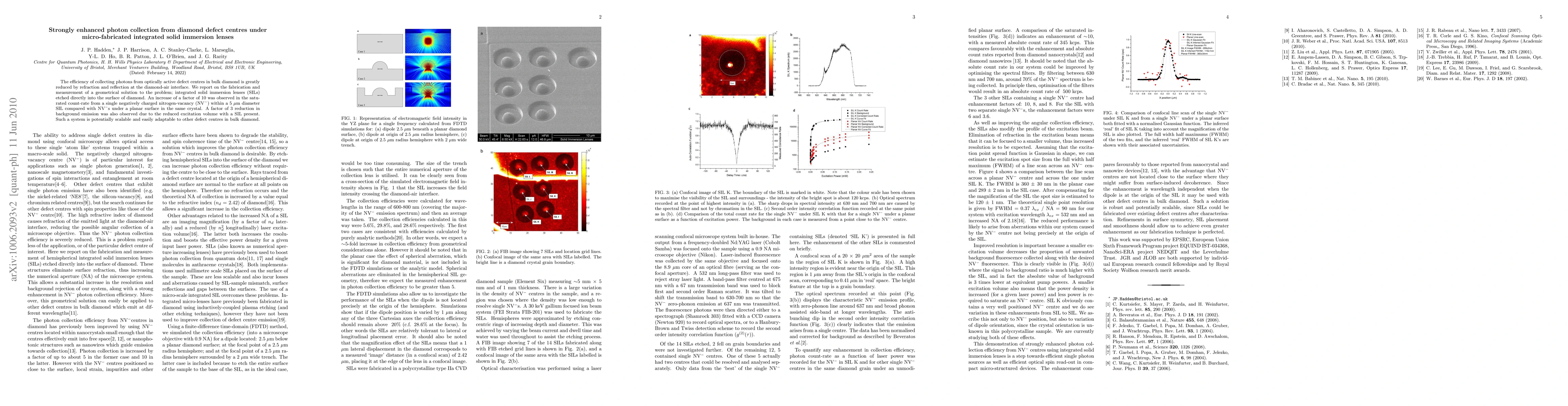This research enhances photon collection efficiency from diamond defect centres by integrating solid immersion lenses (SILs) into the diamond surface, achieving a tenfold increase in photon count rate from nitrogen-vacancy centres and a threefold reduction in background emission, demonstrating scalability and adaptability.