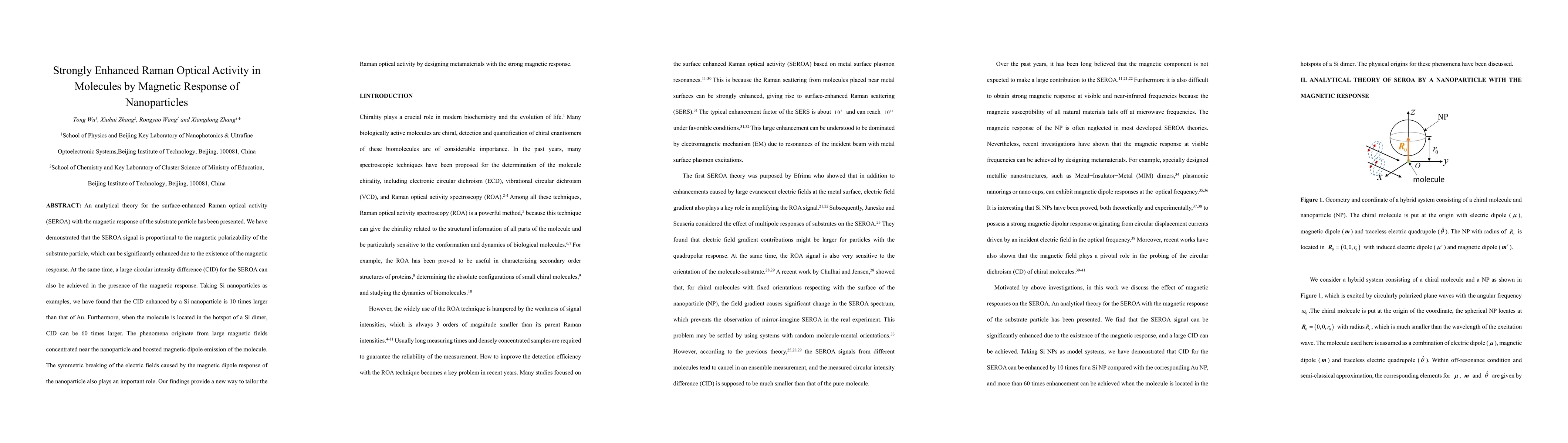 This paper presents an analytical theory for surface-enhanced Raman optical activity (SEROA) enhanced by magnetic response from nanoparticles, showing that the signal is proportional to the magnetic polarizability of the substrate. Silicon nanoparticles significantly enhance the circular intensity difference (CID) compared to gold, demonstrating up to 60 times greater enhancement due to strong magnetic fields and dipole emission.