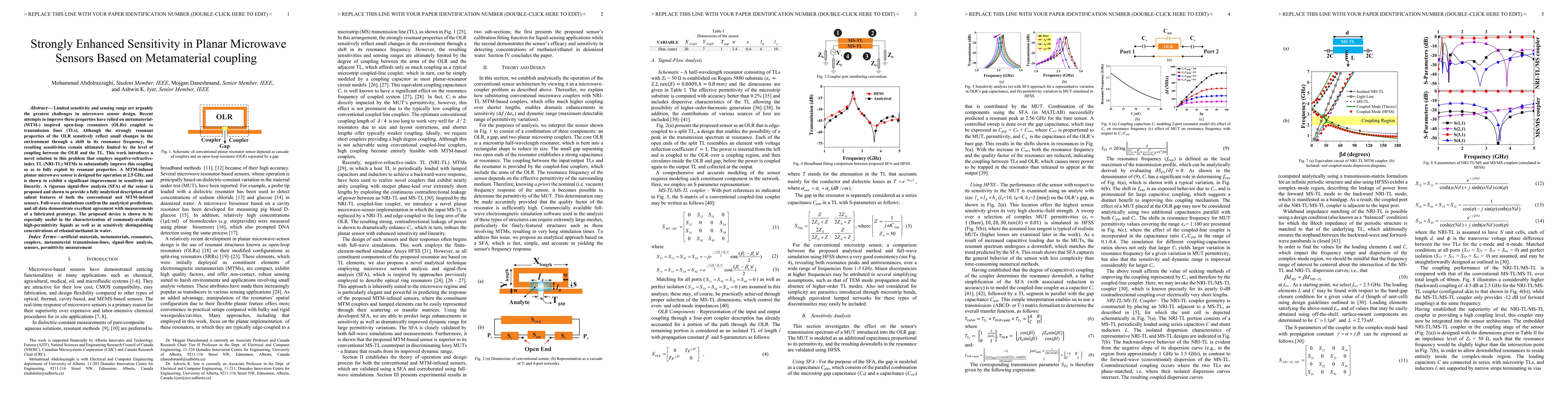 This paper presents a novel planar microwave sensor utilizing metamaterial-inspired negative-refractive-index transmission lines to enhance sensitivity and linearity through improved coupling with open-loop resonators. The proposed sensor demonstrates significant improvements in sensitivity and linearity, validated by analytical, simulation, and experimental results.