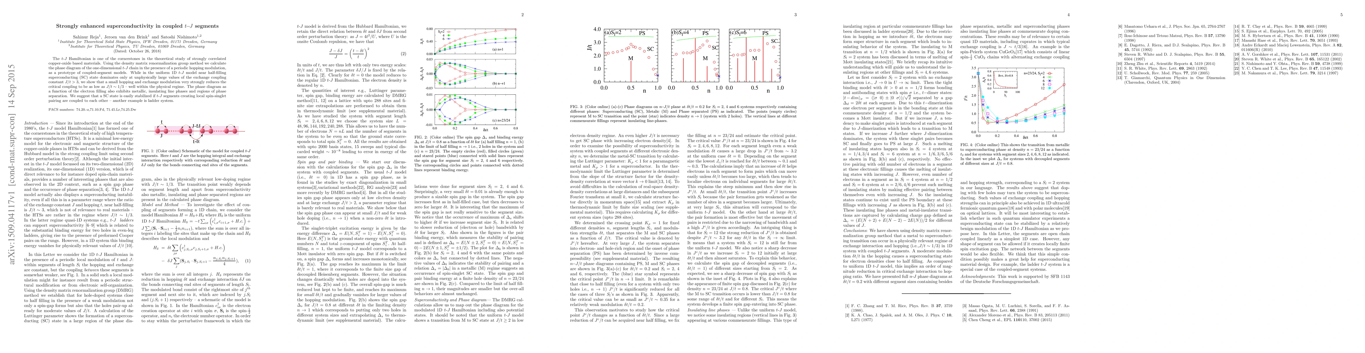 The $t\!\!-\!\!J$ Hamiltonian is one of the cornerstones in the theoretical study of strongly correlated copper-oxide based materials. Using the density matrix renormalization group method we calculate the phase diagram of the one-dimensional (1D) $t\!\!-\!\!J$ chain in the presence of a periodic hopping modulation, as a prototype of coupled-segment models. While in the uniform 1D $t\!\!-\!\!J$ model near half-filling superconducting (SC) state dominates only at unphysically large values of the exchange coupling constant $J/t>3$, we show that a small hopping and exchange modulation very strongly reduces the critical coupling to be as low as $J/t\sim1/3$ -- well within the physical regime. The phase diagram as a function of the electron filling also exhibits metallic, insulating line phases and regions of phase separation. We suggest that a SC state is easily stabilized if $t\!\!-\!\!J$ segments creating local spin-singlet pairing are coupled to each other -- another example is ladder system.
