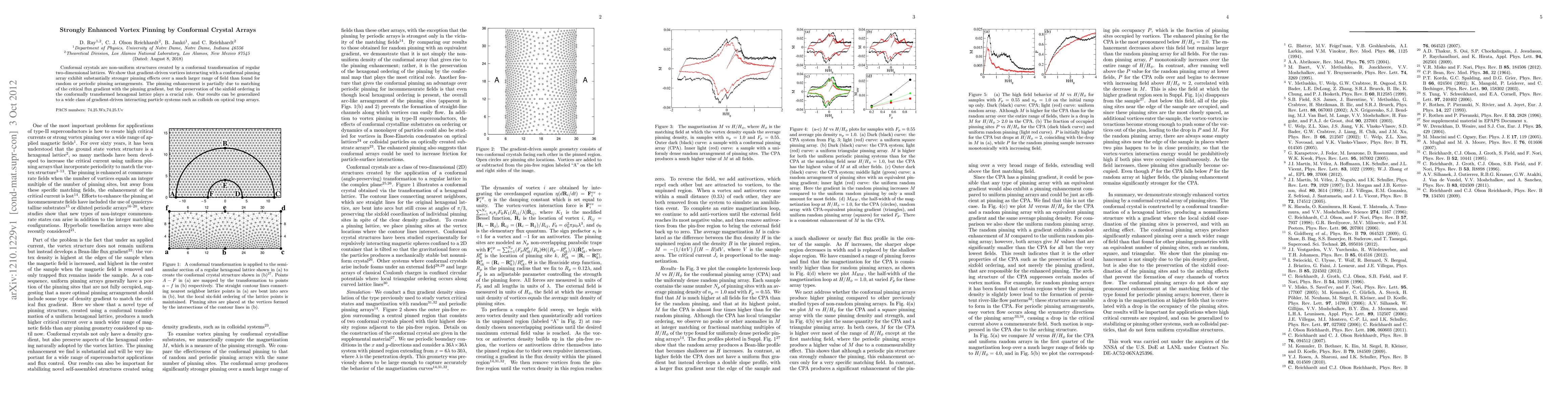 This study demonstrates that conformal crystals enhance vortex pinning by matching critical flux gradients with pinning gradients and preserving hexagonal lattice ordering, leading to stronger and broader pinning effects compared to random or periodic arrays. These findings extend to gradient-driven particle systems like colloids in optical trap arrays.