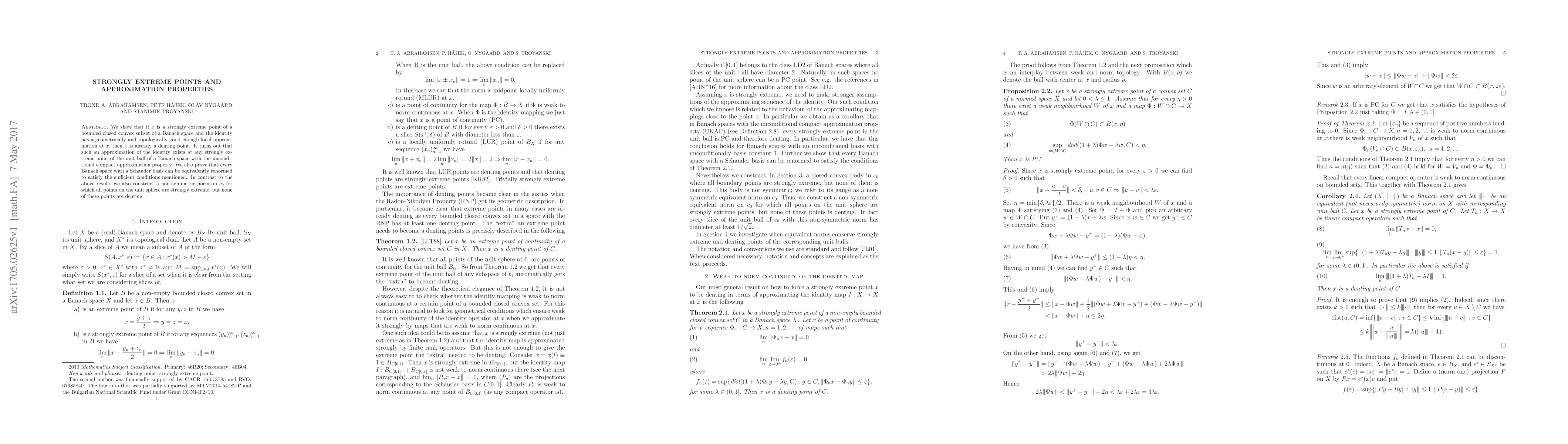 Researchers prove that if a point is strongly extreme in a Banach space with certain properties, it must also be a denting point, which has implications for understanding extreme points and approximation properties.