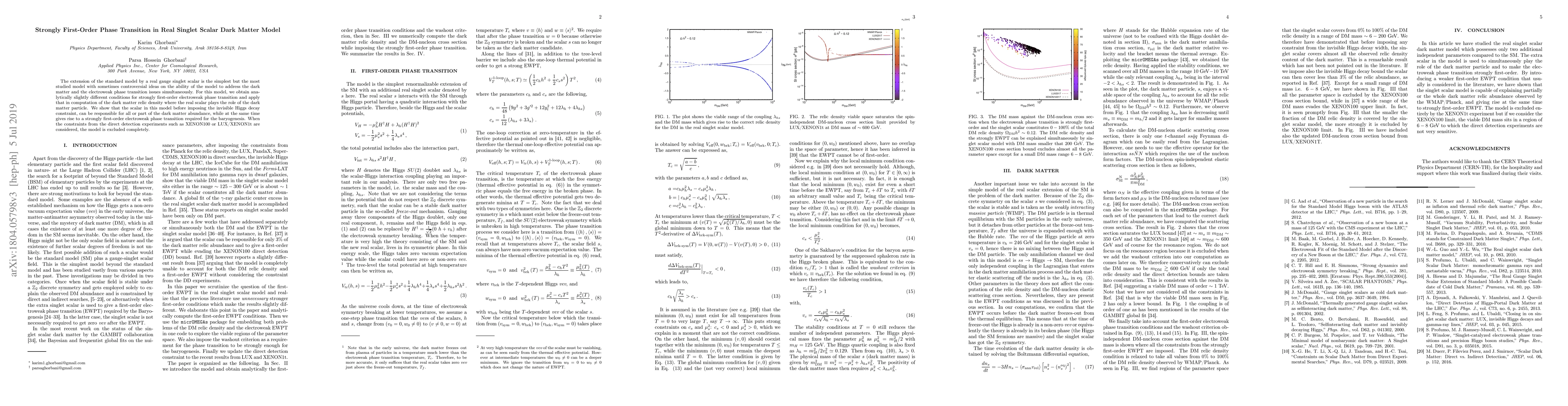 This paper investigates a real gauge singlet scalar extension of the Standard Model, demonstrating its potential to address both dark matter and electroweak phase transition issues. The model can account for the entire or part of the dark matter abundance while inducing a strongly first-order electroweak phase transition, crucial for baryogenesis, but is ruled out when direct detection constraints from experiments like XENON100 or LUX/XENON1t are applied.