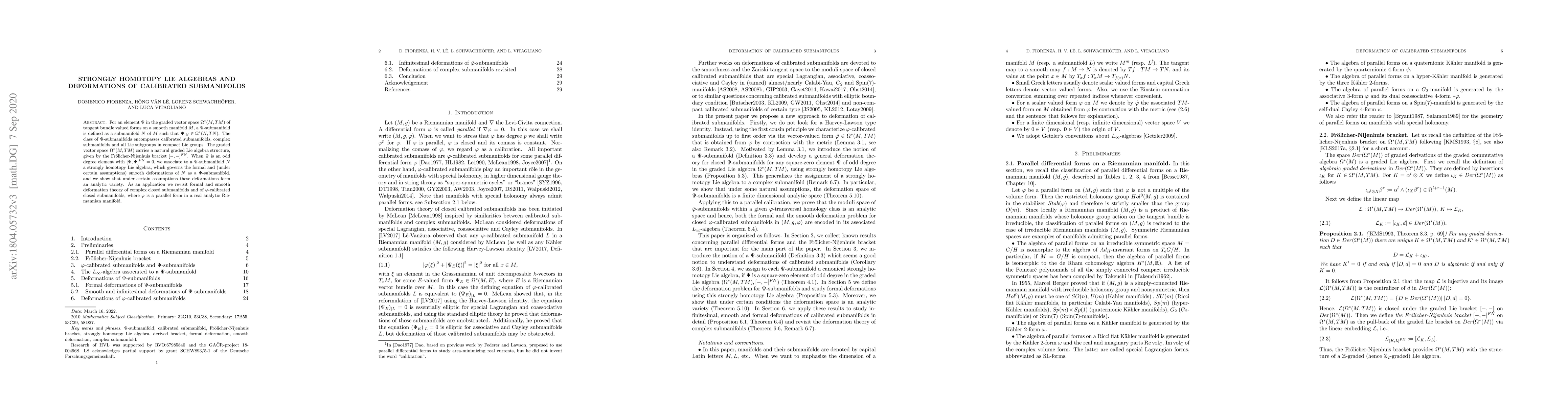This paper explores the connection between $\Psi$-submanifolds, which include calibrated, complex, and Lie subgroup submanifolds, and their deformations. It introduces strongly homotopy Lie algebras for certain $\Psi$ elements to describe the deformations, demonstrating that these deformations form an analytic variety under specific conditions.