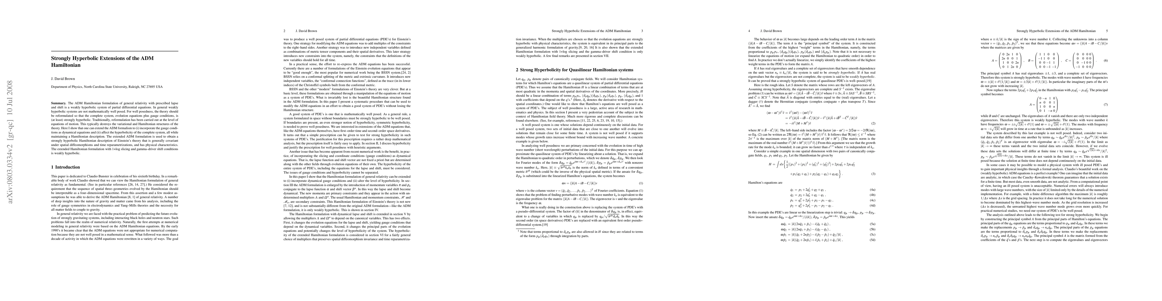 This paper reformulates the ADM Hamiltonian of general relativity to achieve strong hyperbolicity while preserving the Hamiltonian structure and variational formulation. The extended ADM formalism incorporates gauge conditions as dynamical equations, ensuring well-posedness and maintaining general covariance.