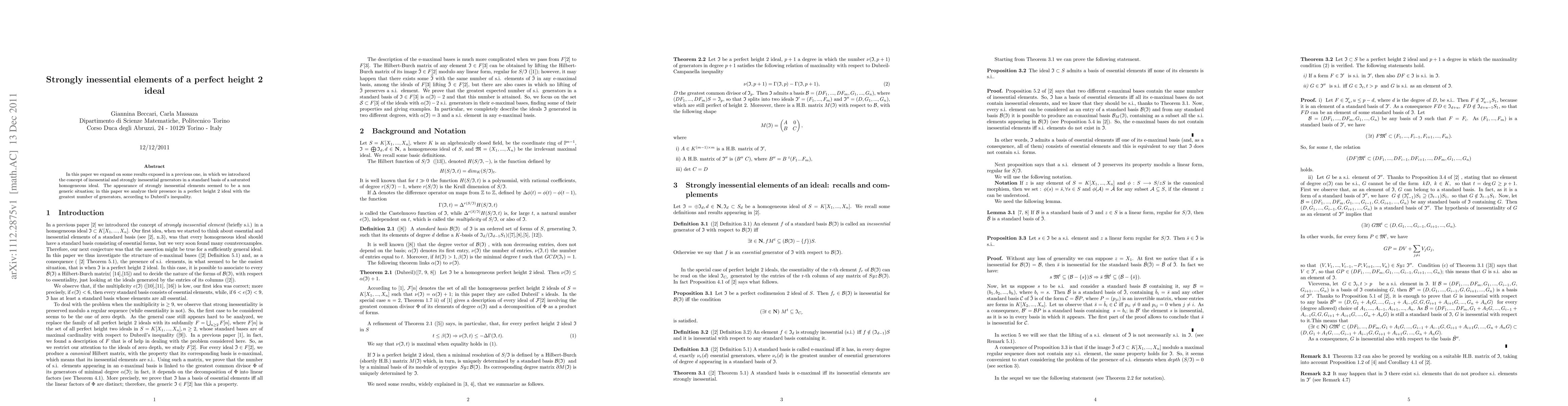 This paper investigates the occurrence of strongly inessential elements in a perfect height 2 ideal, which has the maximum number of generators as per Dubreil's inequality, expanding on previous work on inessential generators in saturated homogeneous ideals. The study aims to understand if the presence of such elements is a non-generic phenomenon.